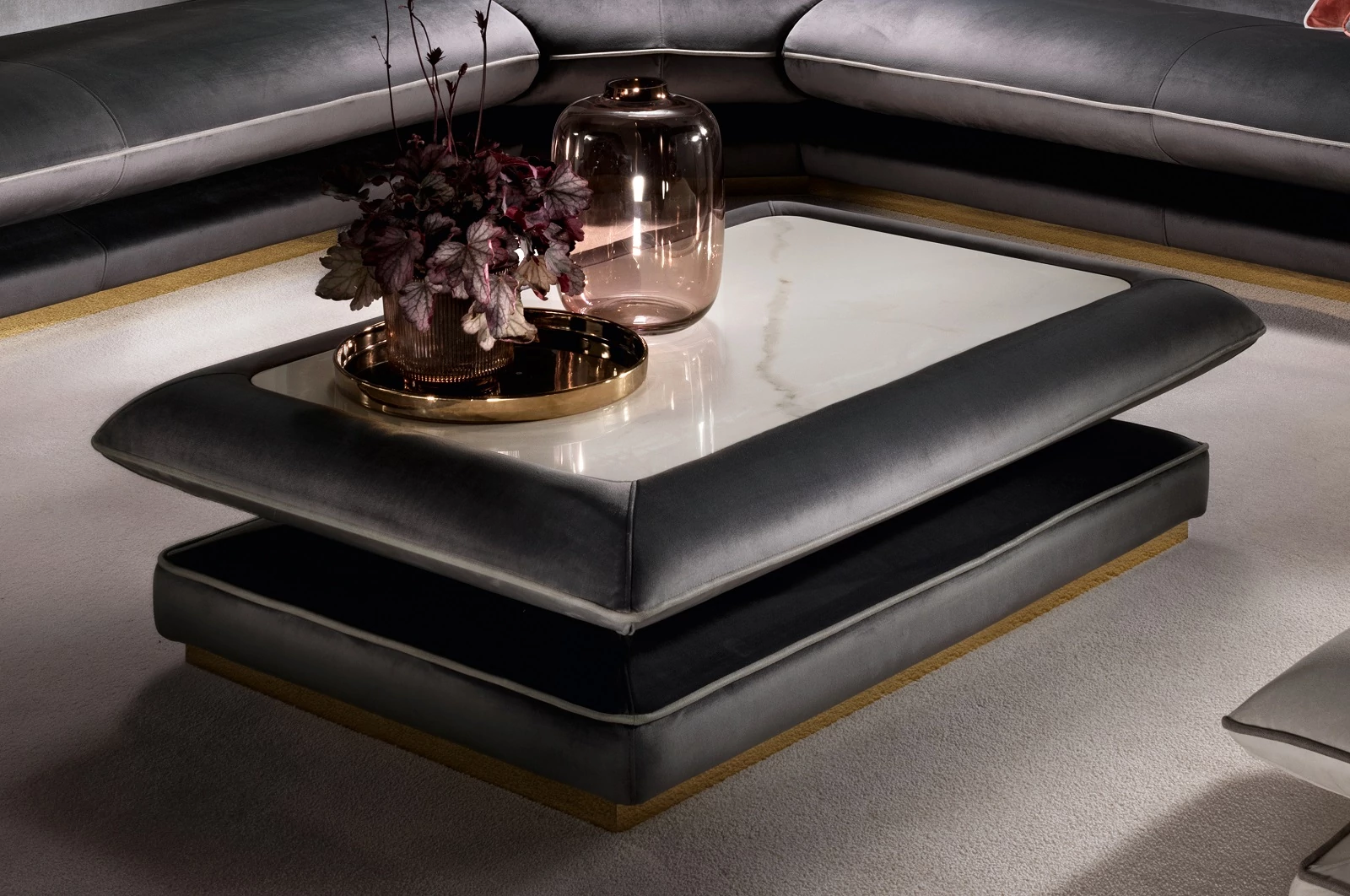The Allure collection lends a modern style to your living room, and every detail of it reveals sophistication and variety. The composition that contains couches, comfortable armchairs and small tables can be variable with the addition of corner components. Everything is designed to meet your needs.