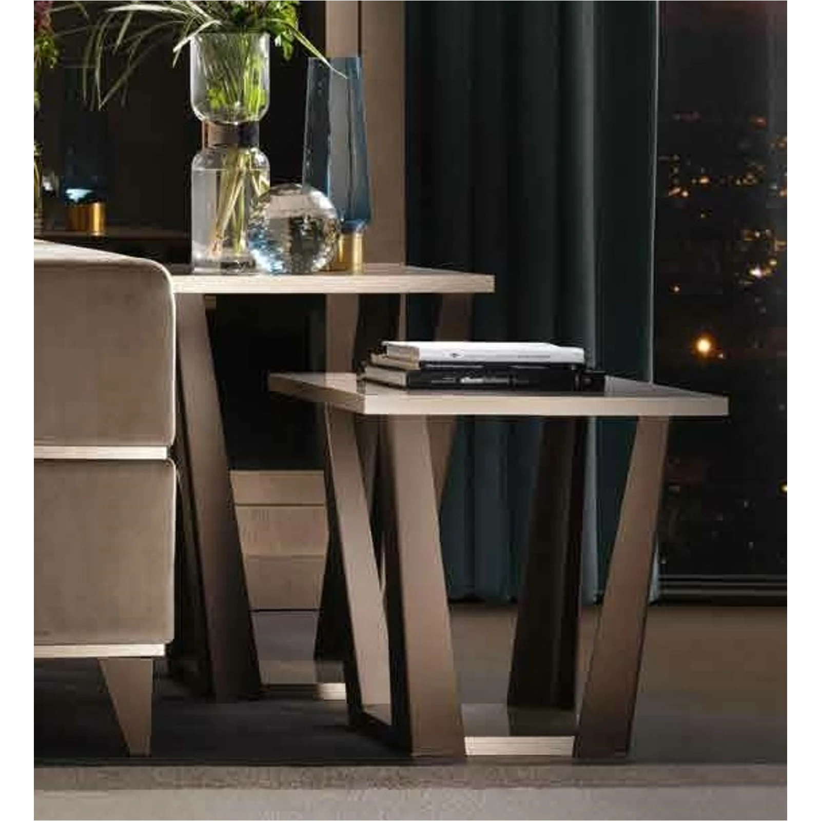 Ambra is the new Collection of the brand Adora, that includes furnishing elements for your living room, dining room and bedroom. Once again, Adora has left its unmistakable hallmark on furniture items that fly the flag for the prestige of Italian style and for the Italian flair for furniture with elegance and an inimitable contemporary flavour. The contrasting textures and the dissimilar volume effects between the different surfaces are sophisticated details that do not remain unnoticed and give character to each single furniture element. The structure of the furniture items in elm-wood finish forms an elegant contrast with the textured, open-pored doors, which are overlaid with marble-finish panels. Furnishing solutions with stylish, elegant silhouettes repeat the same contrasting effect that is enhanced by the satin-finish bronze profiles of the handles and feet. Another feature worth noting is the balance of delicate shades that add their own touch of elegance to each piece, with bright reflections from mirrored glass that, like a jewel, give luminosity to the whole furniture composition.