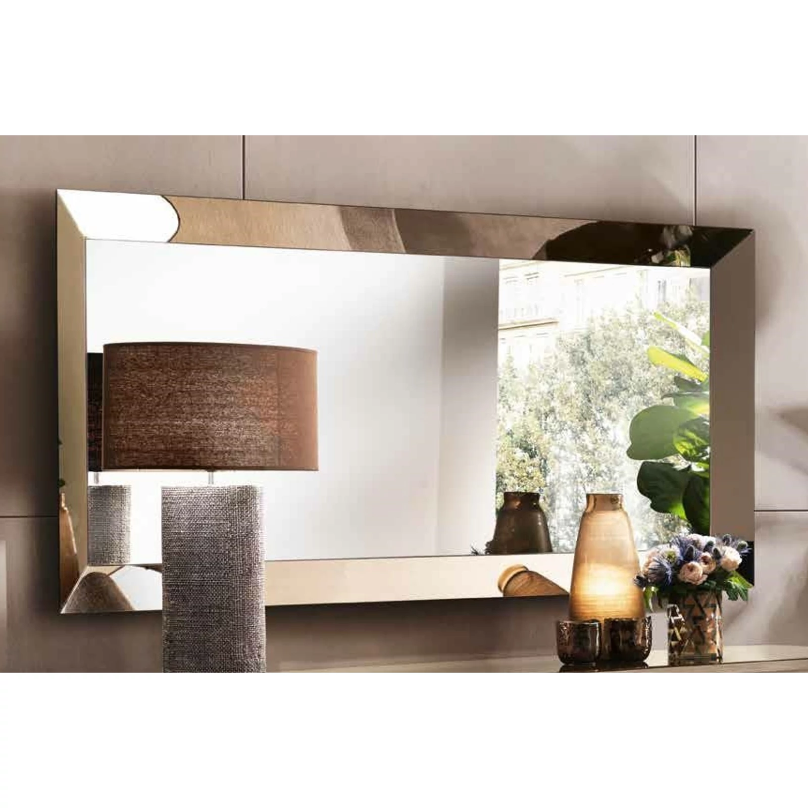Ambra is the new Collection of the brand Adora, that includes furnishing elements for your living room, dining room and bedroom. Once again, Adora has left its unmistakable hallmark on furniture items that fly the flag for the prestige of Italian style and for the Italian flair for furniture with elegance and an inimitable contemporary flavour. The contrasting textures and the dissimilar volume effects between the different surfaces are sophisticated details that do not remain unnoticed and give character to each single furniture element. The structure of the furniture items in elm-wood finish forms an elegant contrast with the textured, open-pored doors, which are overlaid with marble-finish panels. Furnishing solutions with stylish, elegant silhouettes repeat the same contrasting effect that is enhanced by the satin-finish bronze profiles of the handles and feet. Another feature worth noting is the balance of delicate shades that add their own touch of elegance to each piece, with bright reflections from mirrored glass that, like a jewel, give luminosity to the whole furniture composition.