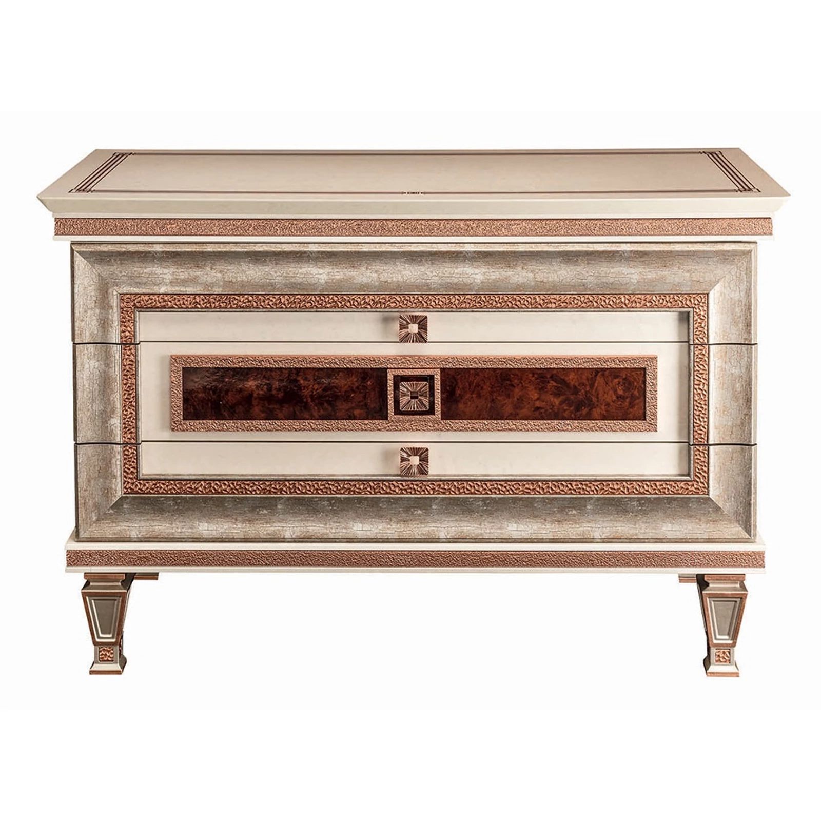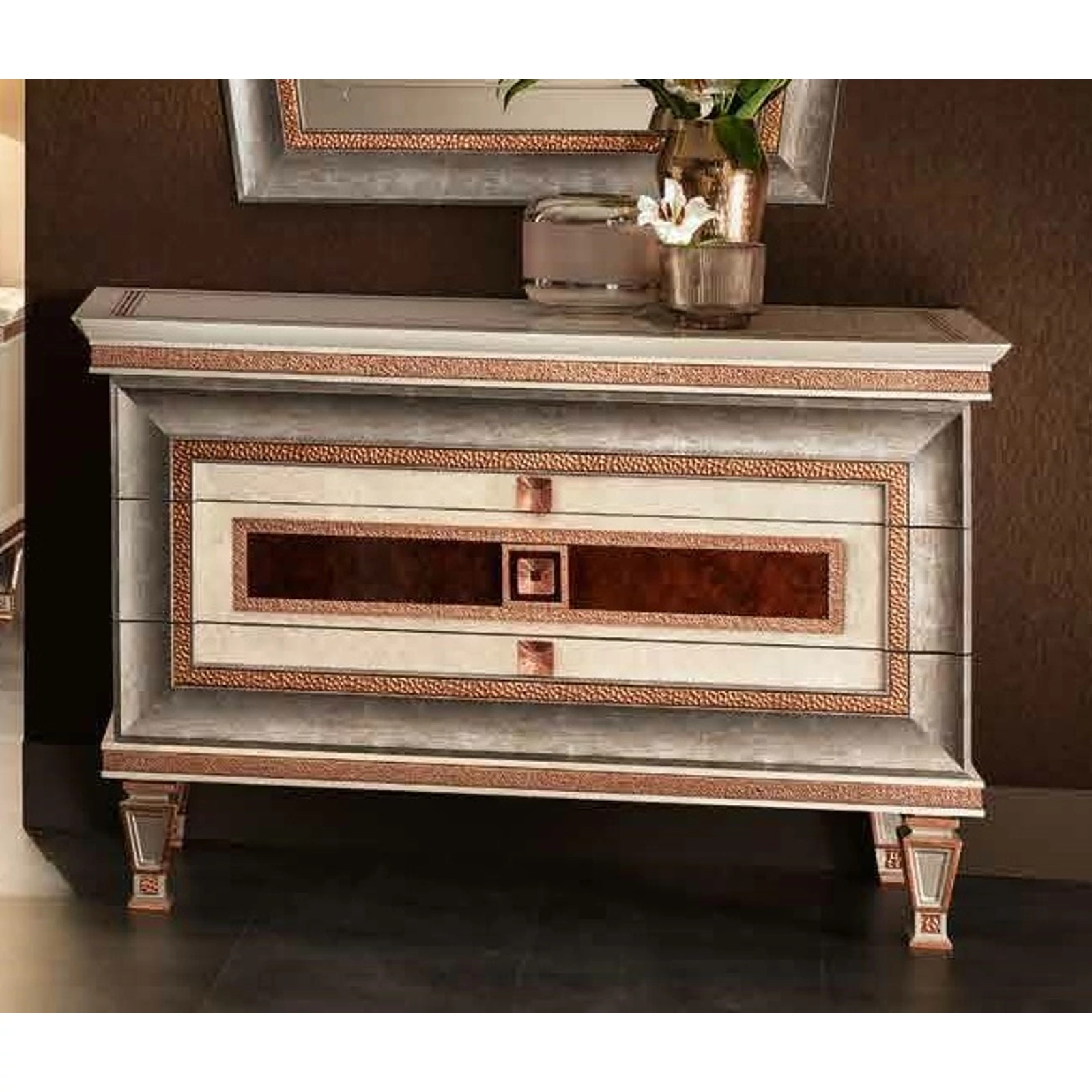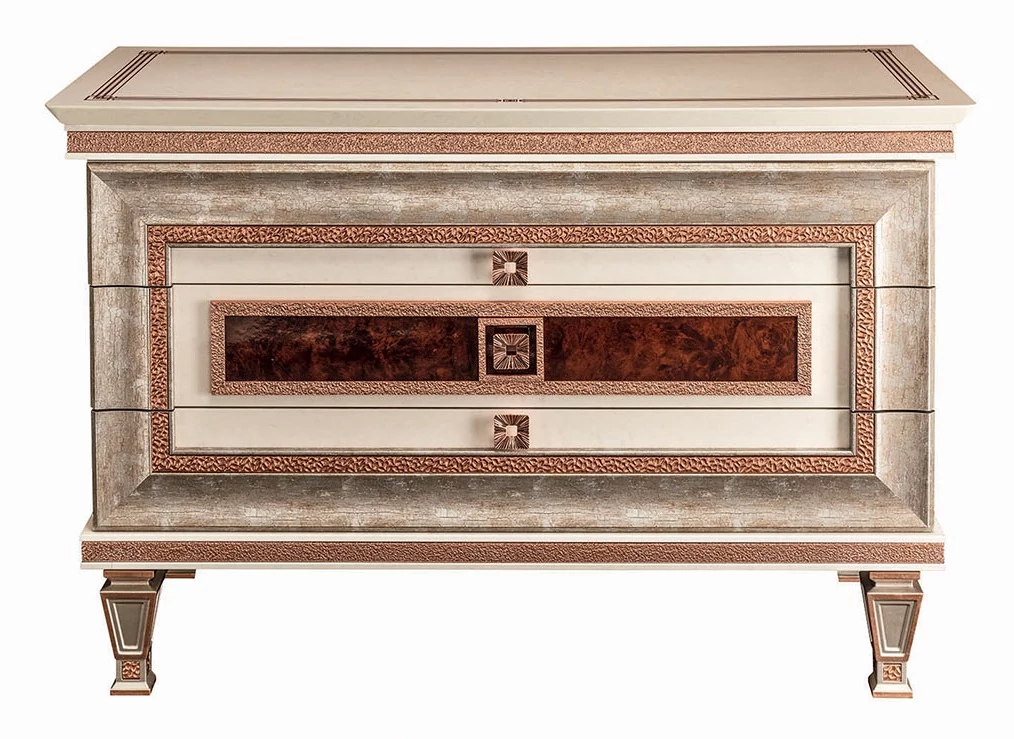 ArredoClassic presents its new Dolce Vita collection which with its geometrical shapes and carefully elaborate details represents the real art déco style. Its refined but also regular shapes are decorated with such precious accessories like the decoration of the pieces in rose gold color. The essence of the Dolce Vita concept is to give elegance to the whole apartment, spiced up with the 100% Made in Italy design, which also guarantees the high quality of the products.