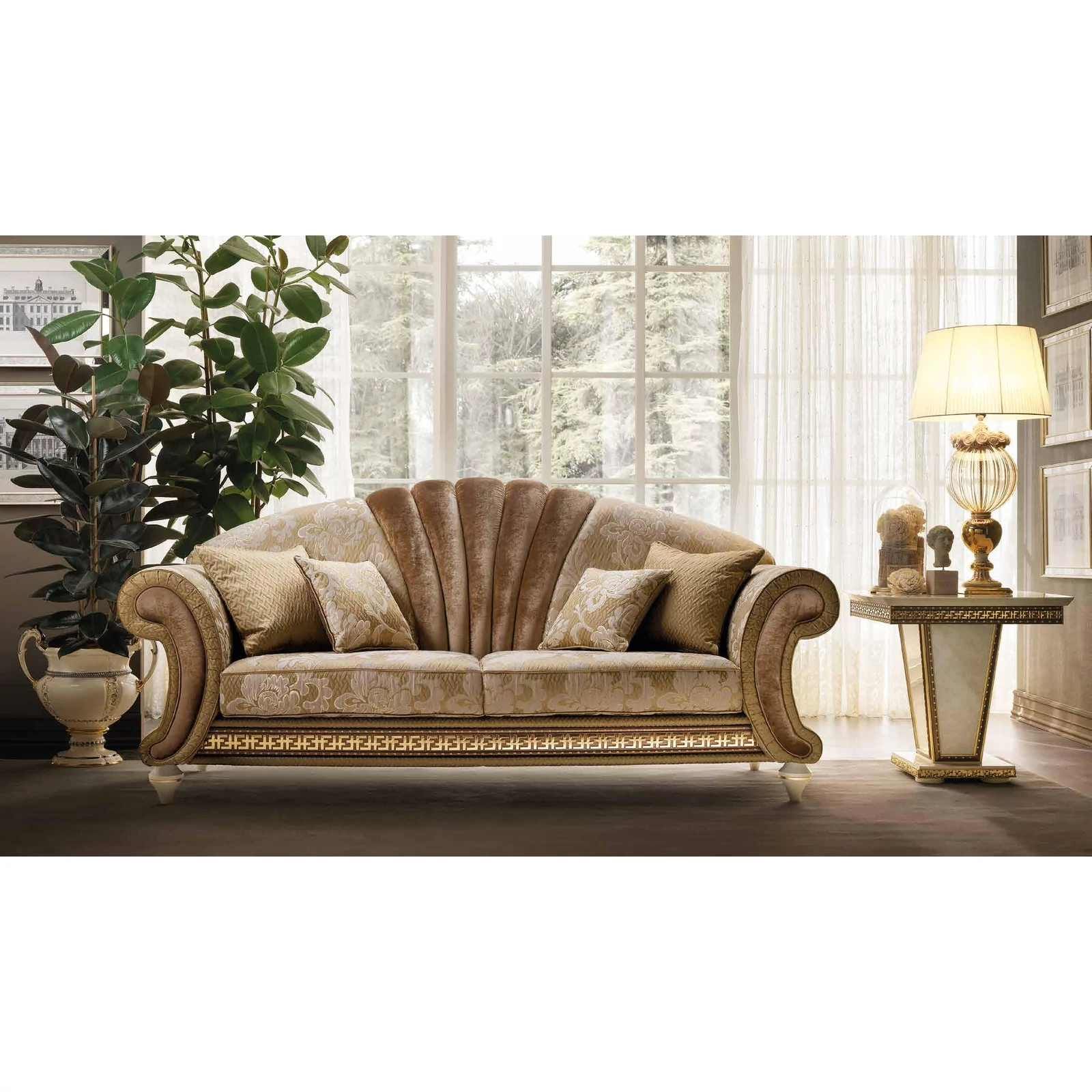 The extremely beautiful new model of the ArredoClassic luxury furniture factory is Fantasia, that perfectly represents the elegance and harmony of neoclassical style. Its sophisticated design that is perfectly elaborated in every single detail created the opportunity that the full luxury of the Roman Empire arrives also at your home. The collection which shows an idyllic balance, goes back to a receptive detail of the Greek and the Mediterranean arts, to create then a single beautiful collection. The gold-plated frames and elegant details make the marbled surfaces and long staight lines really exciting. Every component of the Fantasia collection is the result of an attentive philological research and its a perfect example of what ArredoClassic represents: the highest quality of 100% Made in Italy lifestyle.