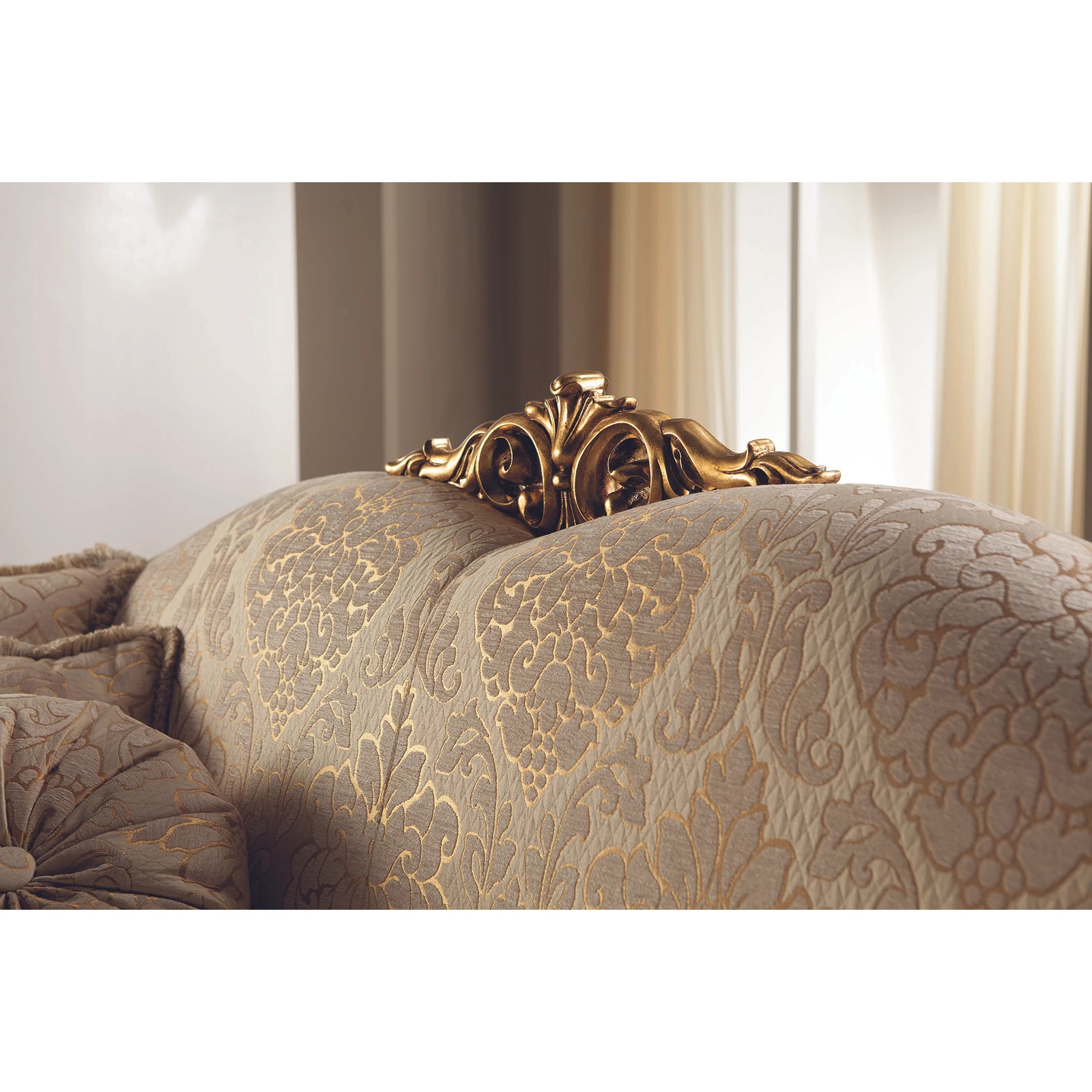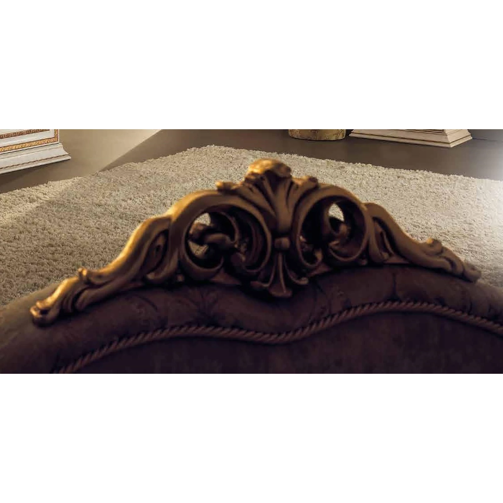 In every element of the Leonardo Italian dining room and living room set, you can observe the light flowing into the room shining on the beautifully decorated, gold-colored surfaces. Large surfaces reflecting the glitter of marble are broken only by these masterful decorations. The excellent craftsmen of ArredoClassic factory created a piece of art of which feeling of luxury you can enjoy together with your family and friends. Your showcases and mirrors can be supplemented with an extra gold-colored, antique with crown - choose the set you need and decorate your rooms with it!