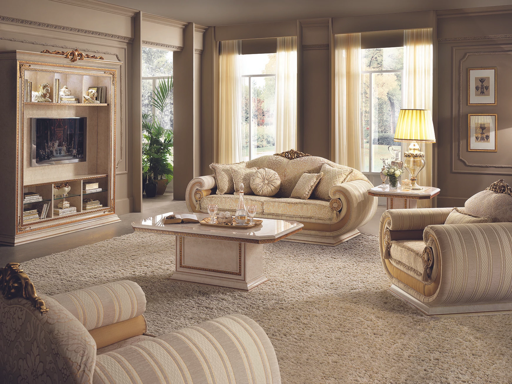 In every element of the Leonardo Italian dining room and living room set, you can observe the light flowing into the room shining on the beautifully decorated, gold-colored surfaces. Large surfaces reflecting the glitter of marble are broken only by these masterful decorations. The excellent craftsmen of ArredoClassic factory created a piece of art of which feeling of luxury you can enjoy together with your family and friends. Your showcases and mirrors can be supplemented with an extra gold-colored, antique with crown - choose the set you need and decorate your rooms with it!