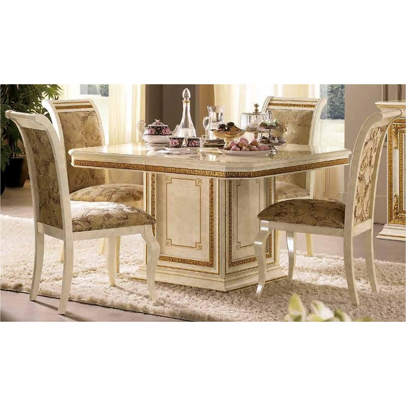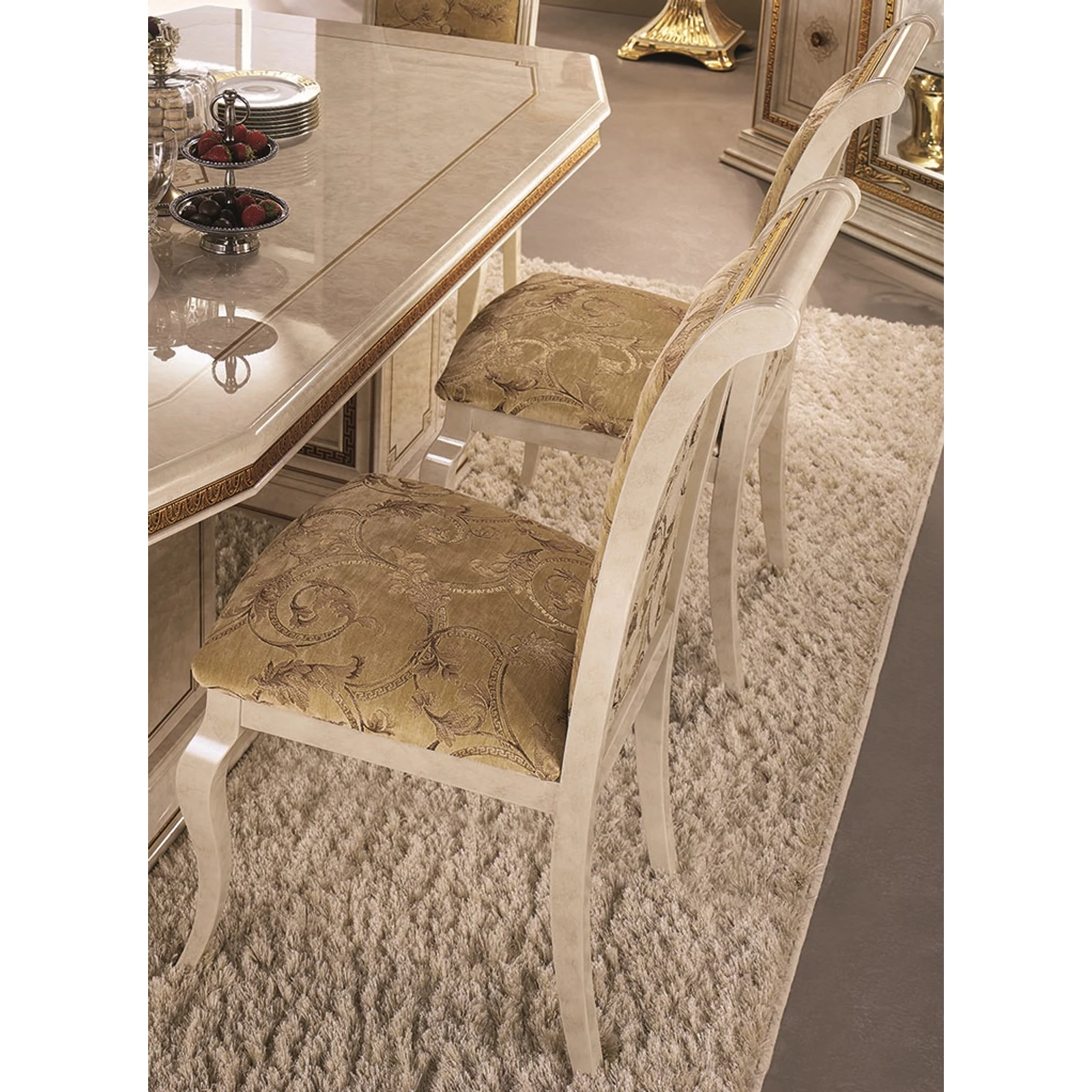 In every element of the Leonardo Italian dining room and living room set, you can observe the light flowing into the room shining on the beautifully decorated, gold-colored surfaces. Large surfaces reflecting the glitter of marble are broken only by these masterful decorations. The excellent craftsmen of ArredoClassic factory created a piece of art of which feeling of luxury you can enjoy together with your family and friends. Your showcases and mirrors can be supplemented with an extra gold-colored, antique with crown - choose the set you need and decorate your rooms with it!