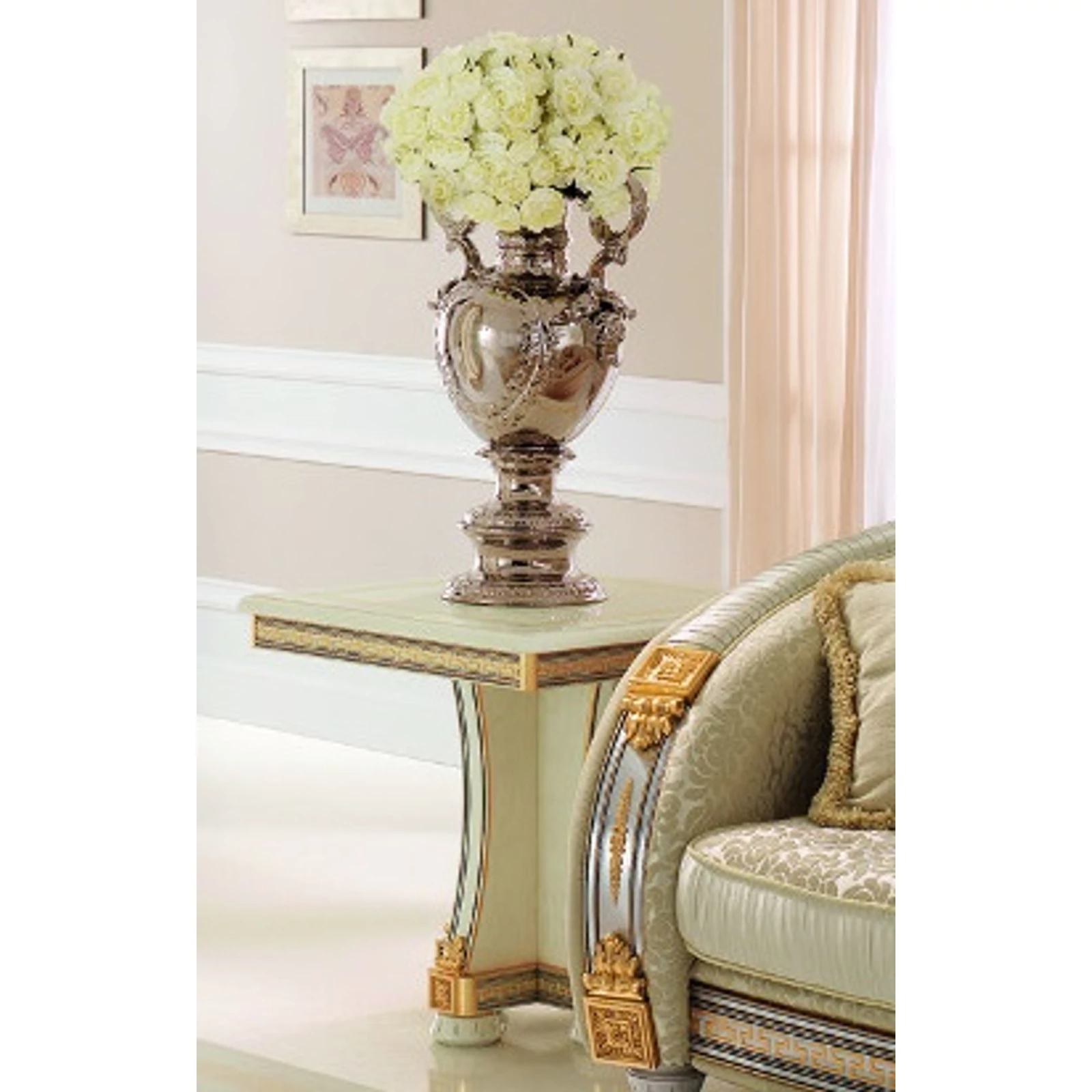ArredoClassic's Liberty collection brings light, clarity and elegance to your home, constantly amazing both its users and guests. Its beautiful cream-colored marbled surfaces are completed with harmony by silver details that gold floral patterns make more unique. Every piece of the model series makes your home a luxury place, at which every minute spent delights. Choose the set that fits you the most, and you will have a work of art! Bedrooms, living rooms, dining rooms and also seating furniture are available in the Liberty searies, check them all!