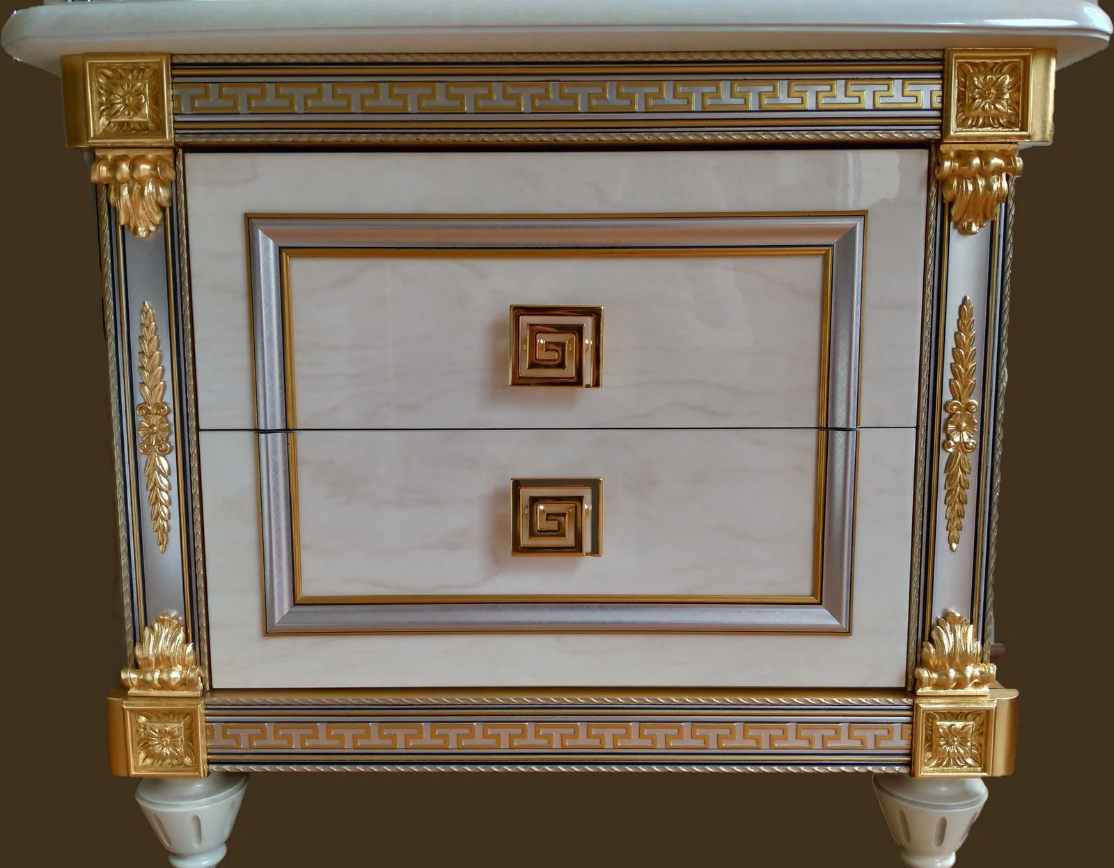 ArredoClassic's Liberty collection brings light, clarity and elegance to your home, constantly amazing both its users and guests. Its beautiful cream-colored marbled surfaces are completed with harmony by silver details that gold floral patterns make more unique. Every piece of the model series makes your home a luxury place, at which every minute spent delights. Choose the set that fits you the most, and you will have a work of art! Bedrooms, living rooms, dining rooms and also seating furniture are available in the Liberty searies, check them all!