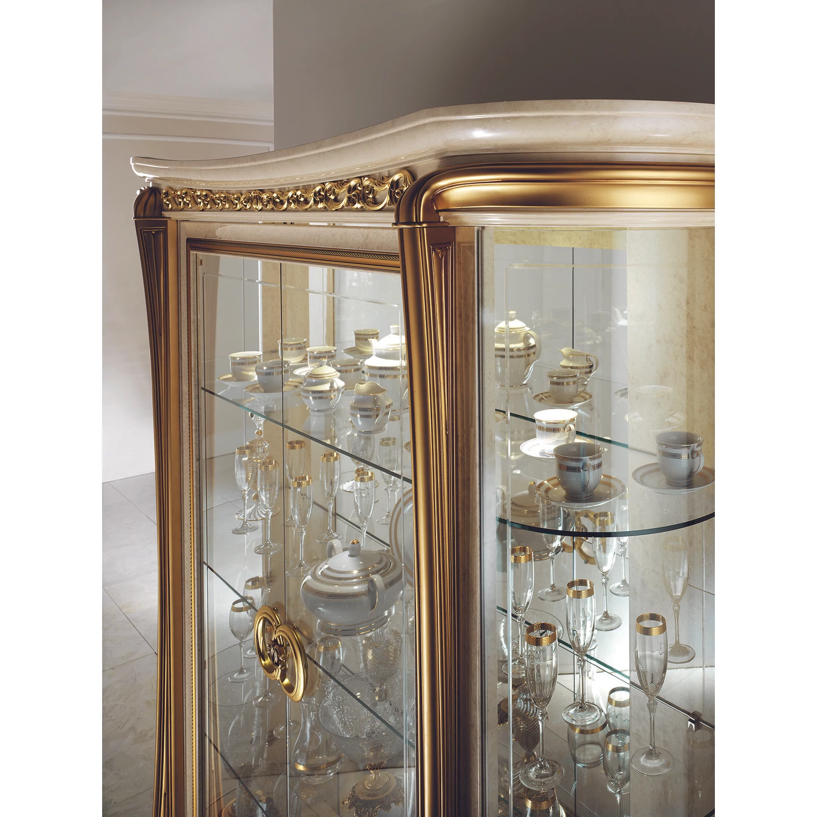 With its Melodia model, ArredoClassic presents an unreleased work composed from the notes of immortal Italian elegance. Italian craftsmen created a new, romantic style with beautiful gold columns, that embrace and emphasize the shapes with soft lines. The delicate and extremely elegant white-melange color reminds us of the prestige of polished marble. Learned and experienced creators have simultaneously created a product range of stunning beauty and at the same time extremely practical.