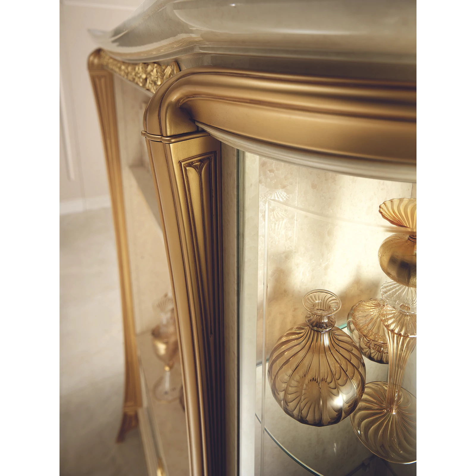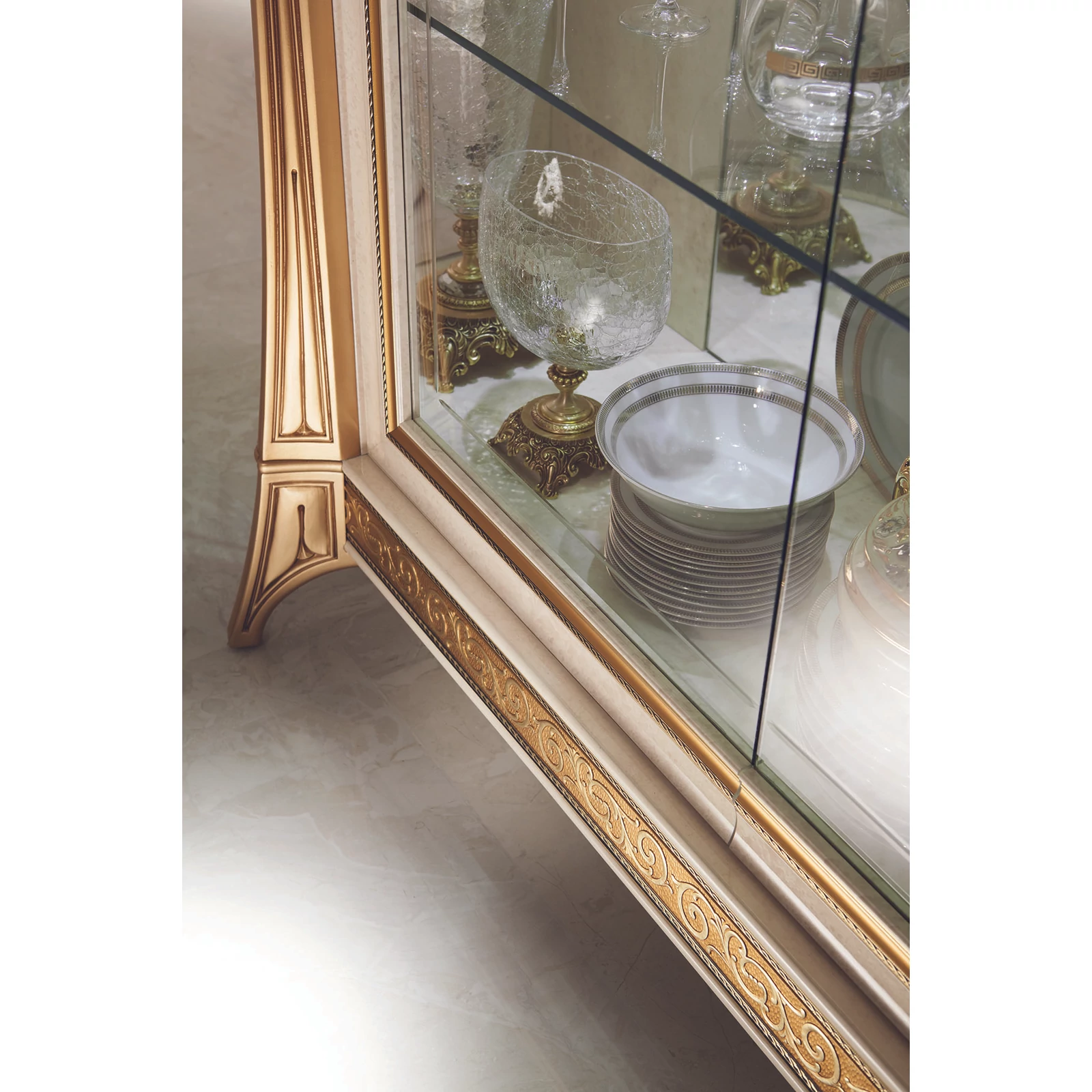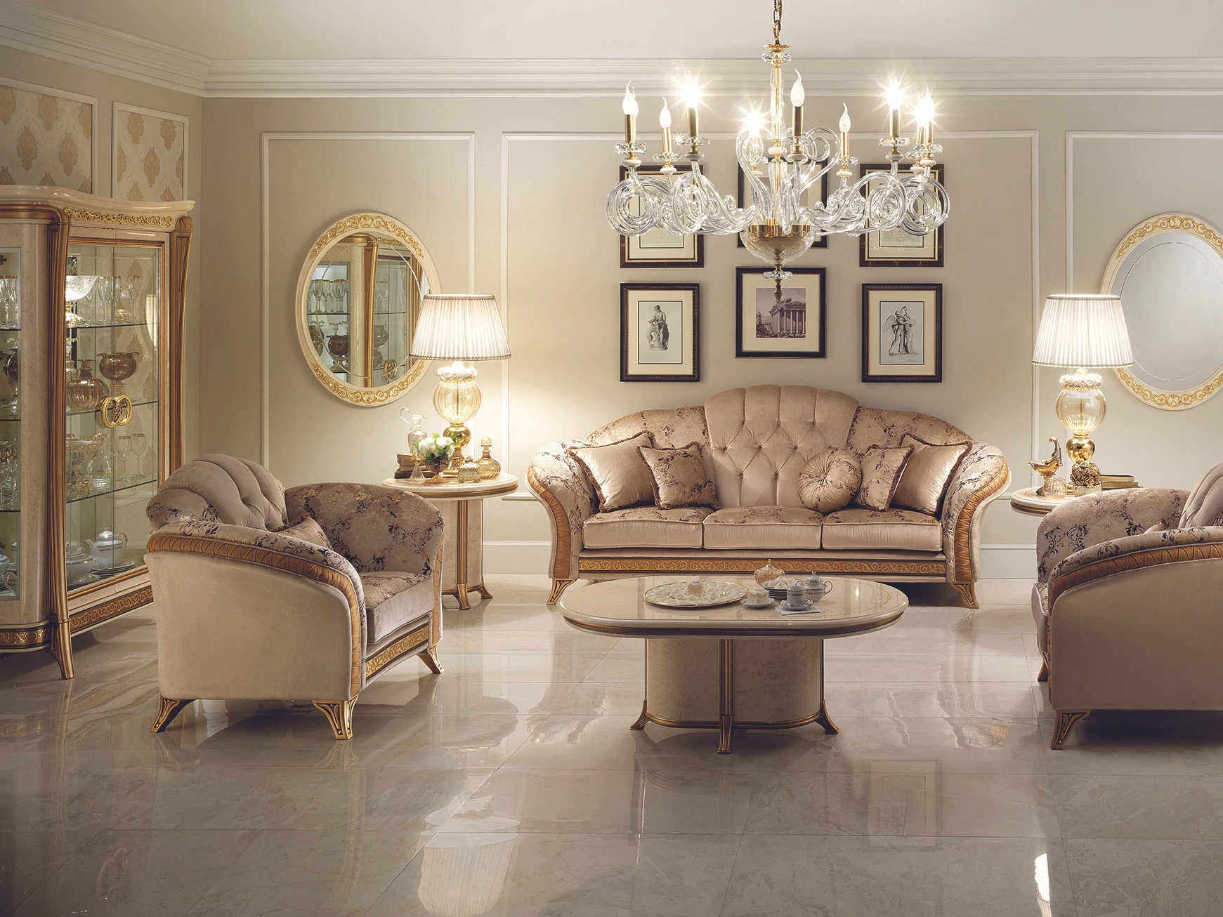 With its Melodia model, ArredoClassic presents an unreleased work composed from the notes of immortal Italian elegance. Italian craftsmen created a new, romantic style with beautiful gold columns, that embrace and emphasize the shapes with soft lines. The delicate and extremely elegant white-melange color reminds us of the prestige of polished marble. Learned and experienced creators have simultaneously created a product range of stunning beauty and at the same time extremely practical.