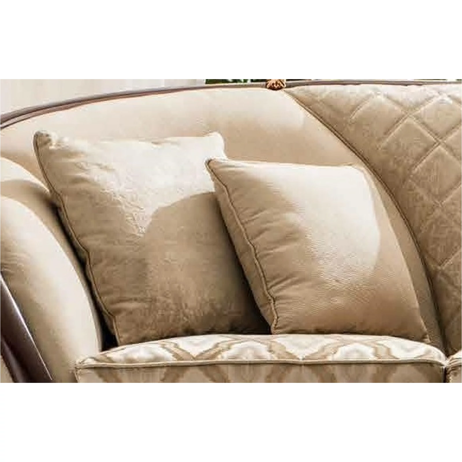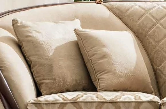 Decorated with precious inlays, the buffet chest of drawers and the majestic appearance of the mirror adorned above it are truly spectacular. The display cabinet’s gorgeous side pillars are adorned with feather-patterned mahogany inserts, and the top and bottom are adorned with handmade gold smoke plate decorations. The harmonizing shape of the armchairs and couches, as well as the simple lines of the wall furniture elements such as the hanging TV wall panel, complement each other perfectly. Hospitable, maximally sophisticated and at the same time practical: the triple couch can also be converted into a magnificent guest bed for visitors. The Modigliani collection is complemented by a desk with a chest of drawers in the study, with an elegant leather-covered office armchair. The gilded side pillars and the crown motifs decorated with the gold smoke plate harmoniously connect each element of the collection. Valuable fabrics, careful elaboration in every detail and high-quality materials symbolize the typical Italian taste.