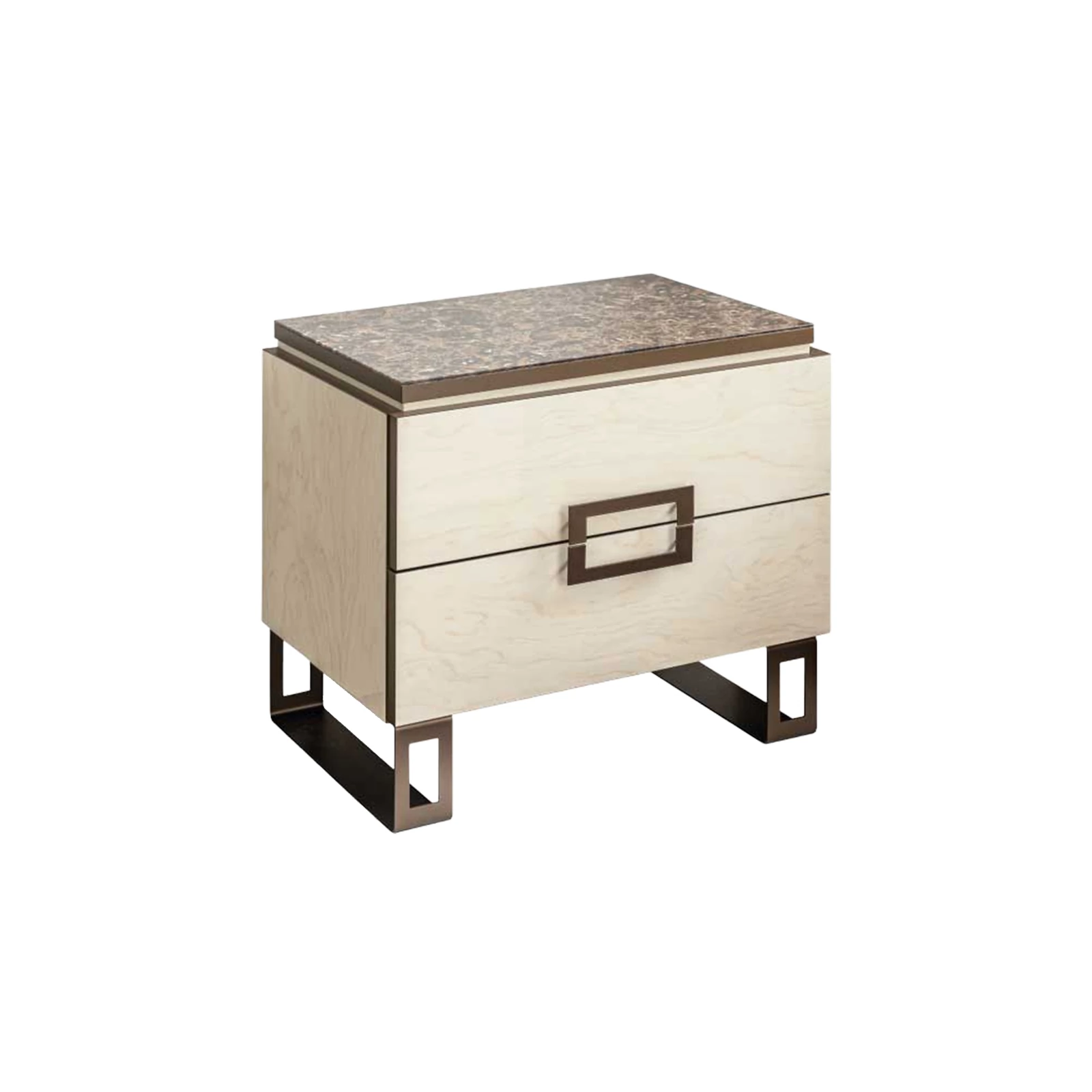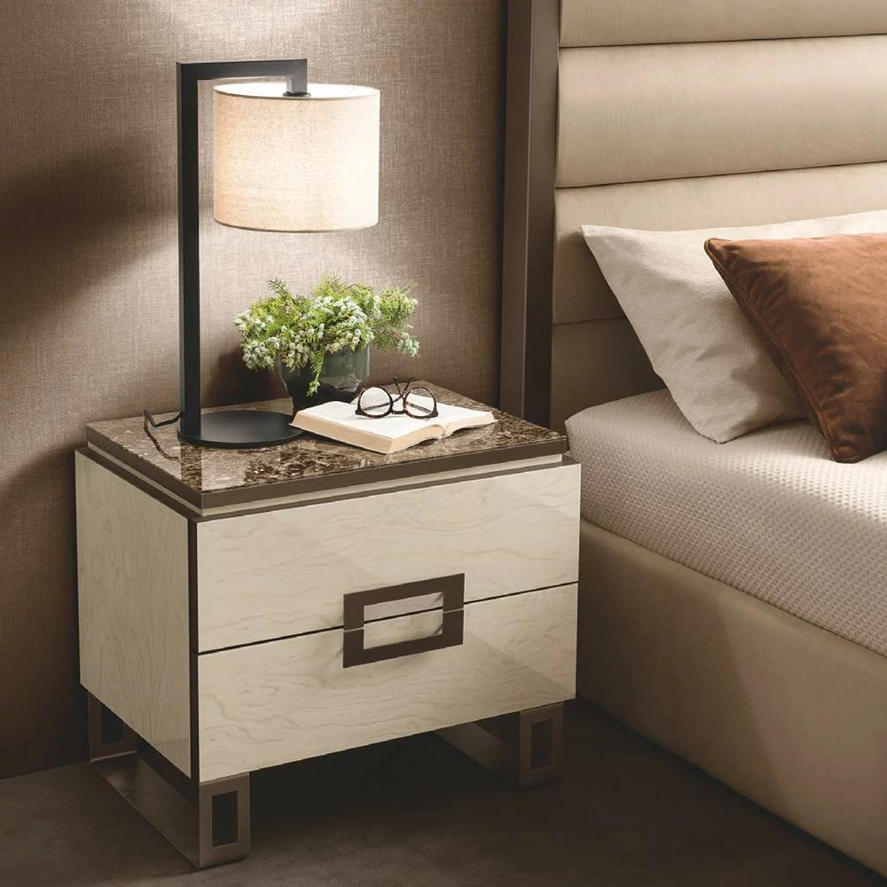 Poesia bears the signature of the Adora brand and is composed of complements designed to furnish the living room, dining room and bedroom. A refined collection in which every piece of furniture is a metaphor for Made-in-Italy beauty and elegance. Minimalist details meet sophisticated materials in a fusion of refined character. With Poesia, contemporary style acquires a new image, thanks to its attractive geometries, special finishes and contrasting materials. Emperador Dark effect screen-printed glass tops, doors in glossy beige marble finish with slight color variations, and metal handles in warm bronze shades are precious details that enrich each element and constitute the leitmotif of the entire collection. The square shapes of the furniture and seats appear linear and graceful, providing a play of volumes and softness that integrate comfort, aesthetics and functionality. Linearity, essentiality and a touch of boldness are Poesia’s stylistic hallmarks. This is where the true poetry of this collection lies: in its ability to convey the value of Italian furniture, by creating cozy and comfortable furnishing scenarios.