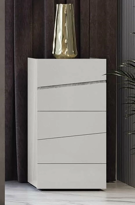 The youthful bedroom that lights up your space with the elegant tones of Carrara marble. Geometric, clean lines are enhanced by the oblique cuts, making model Alba a great choice for both minimalistic and sophisticated interiors. The luminous white and Carrara marble finish of the tops and the inserts between the drawer fronts are smartly coupled together. The natural LED diffused lighting (4000°K) with dimmer touch sensor is standard and the switches are located on the sides of the headboard.