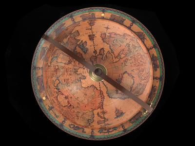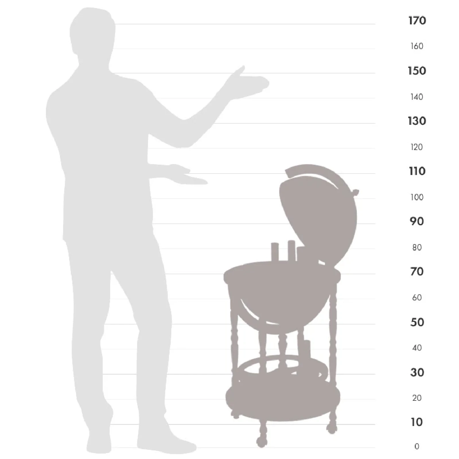 Elegant floor-standing bar globe from Zoffoli Classic collection, Minerva has an inner compartment that can hold up to 9 glasses and 2 or 3 bottles. Additional bottles can be stored on the lower wooden base, beautifully decorated with screen-printing natural water-based colors. The map is an accurate reproduction of a 16th Century cartography. You can easily move it thanks to its casters.