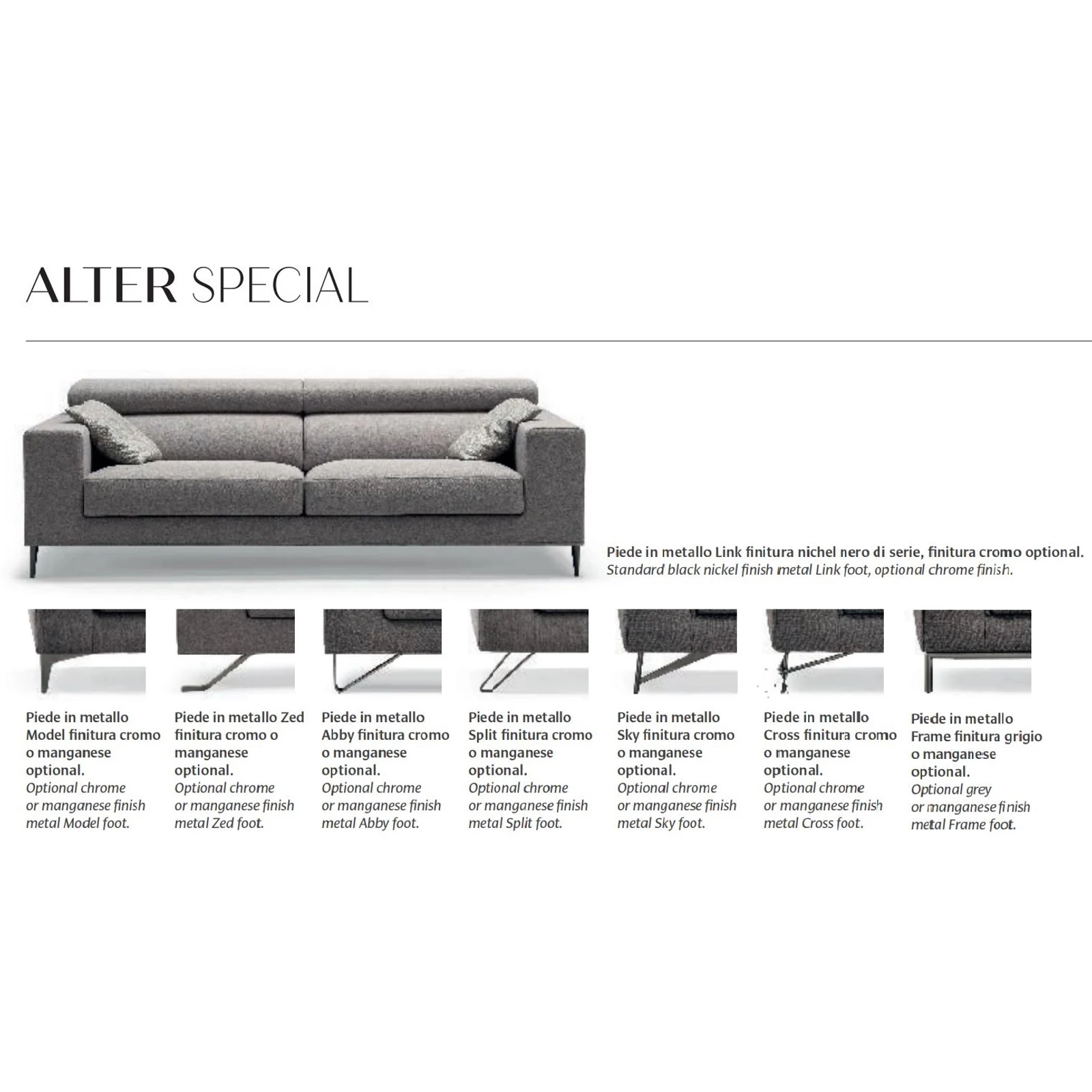 The Alter sofa is a model with decisive lines, expressing stylistic harmony guided by timeless forms and a strong presence. Available in standard and Special versions, differentiated by the leg design. A model belonging to the Samoa Mooving collection.