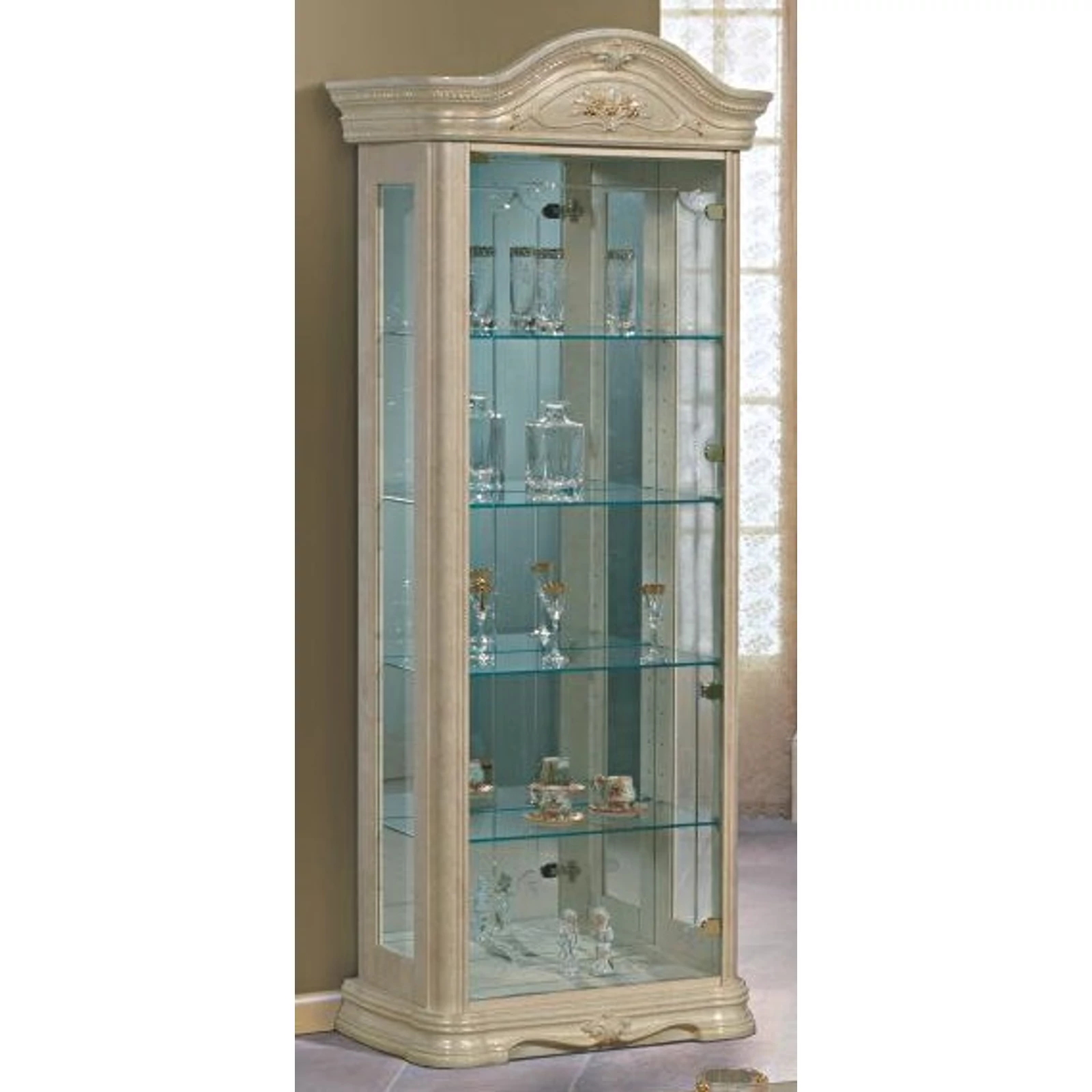 The table is supported by two huge legs, which reminds us to a shell. The cabinet and the chest of drawers are of the same structure, with a drawer in the middle and with three doors, and the mirror is huge. That is how a real Italian living room looks like.