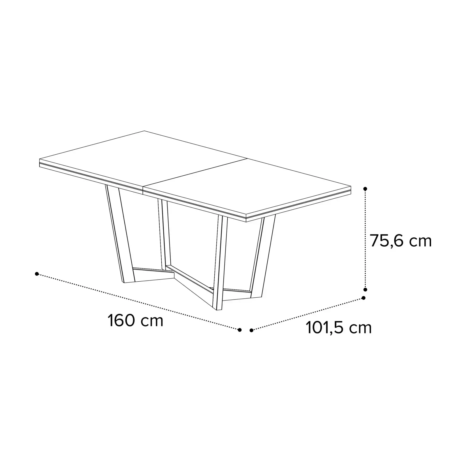 - 160x101,5 cm version: 160×101,5×75,6 cm