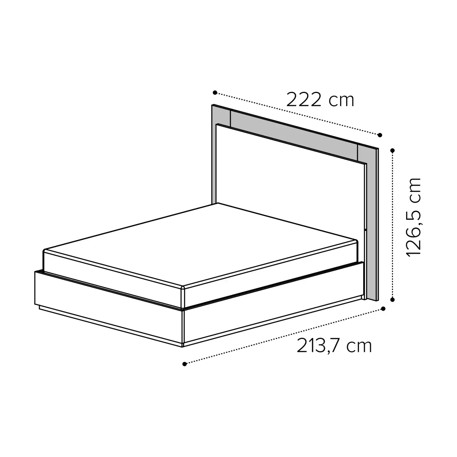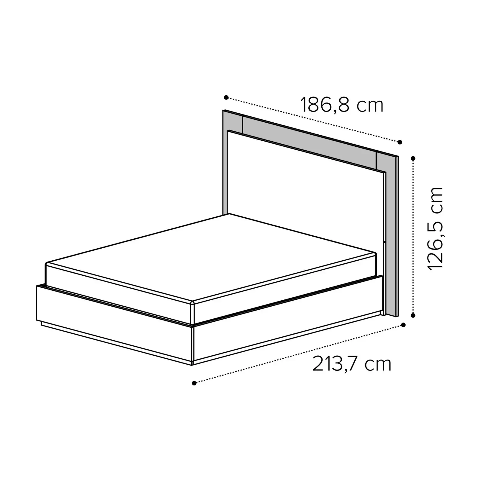 - 160x200 cm version: 186,8×213,7×126,5 cm