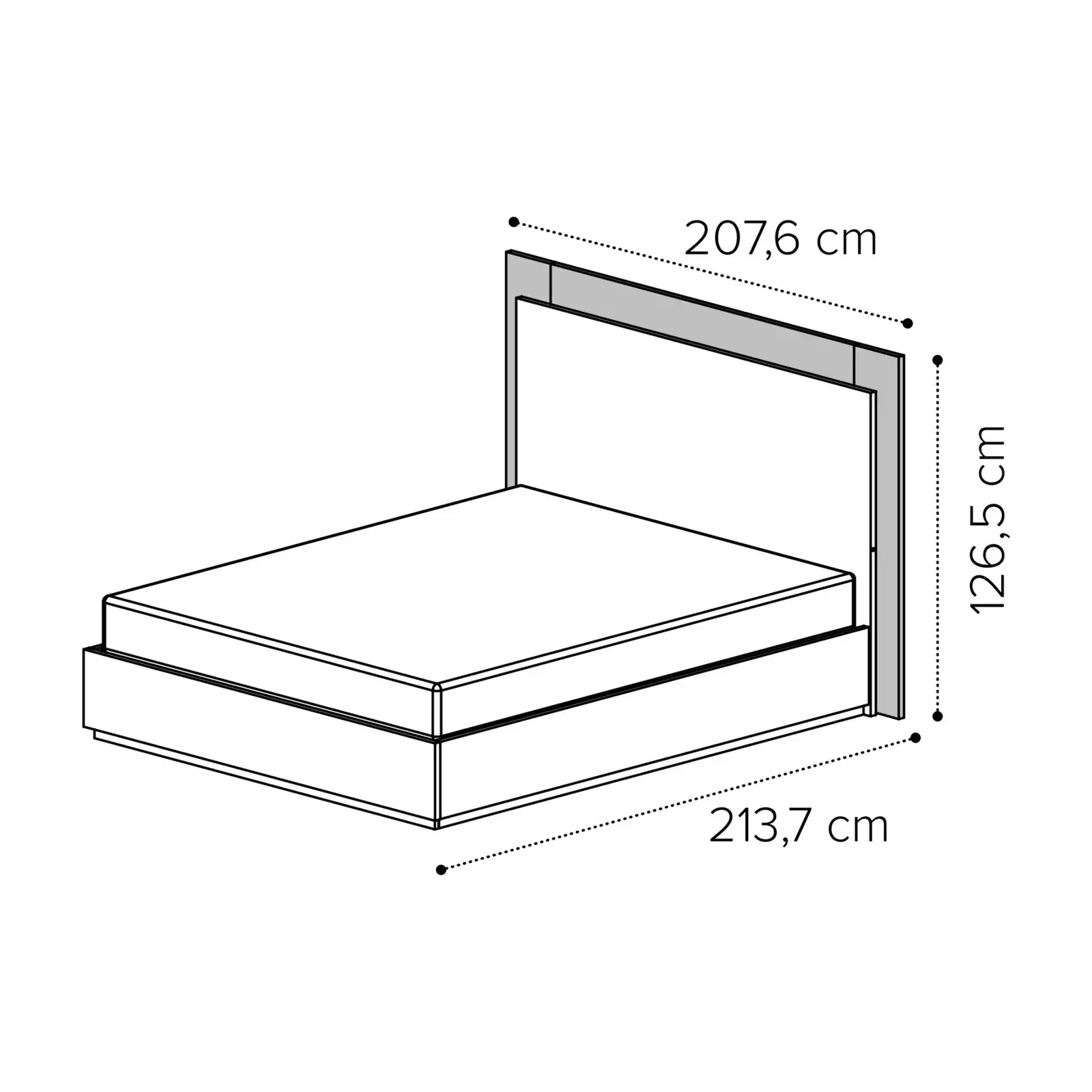 - 180x200 cm version: 207,6×213,7×126,5 cm