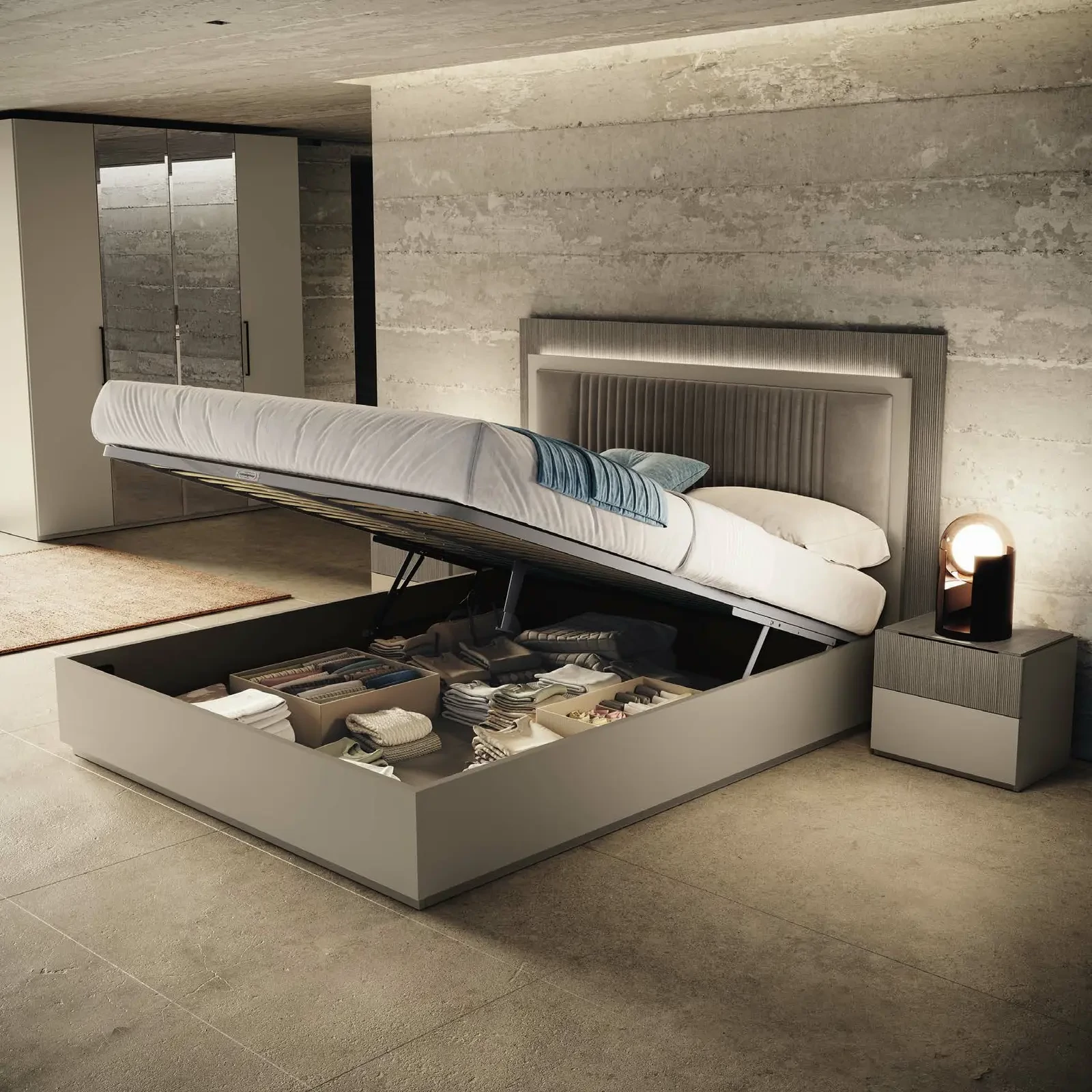 The Essenza double bed brings together style and comfort — a place where rest becomes a true experience. Silky textures, modern shapes, and Italian quality unite to ensure that every night is devoted to tranquility.