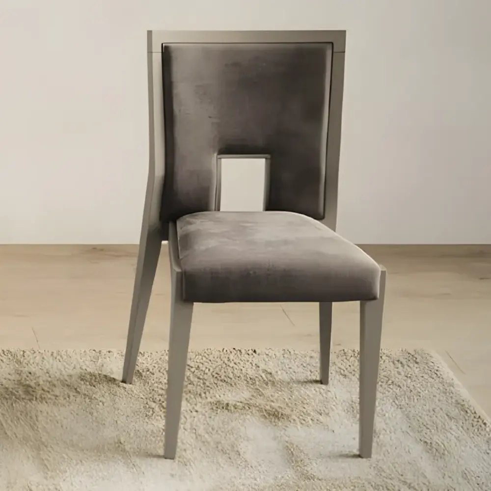 The manufacturer offers three elegant Italian chairs for the Essenza collection — the Ambra, Kleo, and Elvis. Each chair features refined lines, comfortable design, and high-quality upholstery. They are perfect complements to the bedroom, whether used at a dressing table, desk, or as occasional seating.