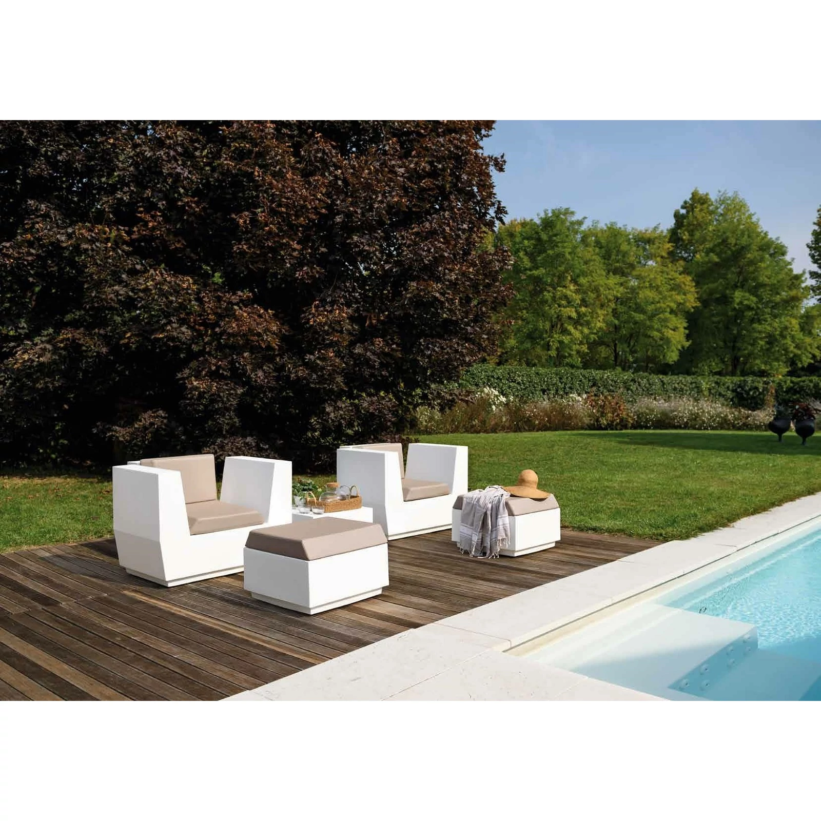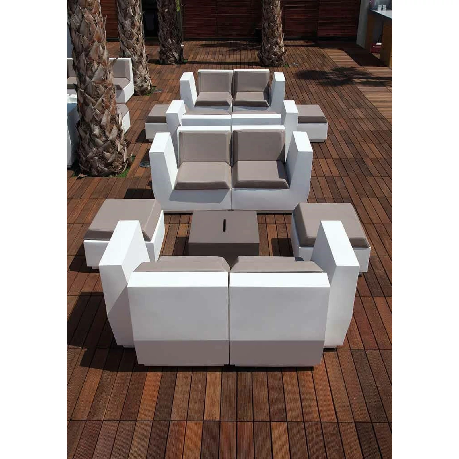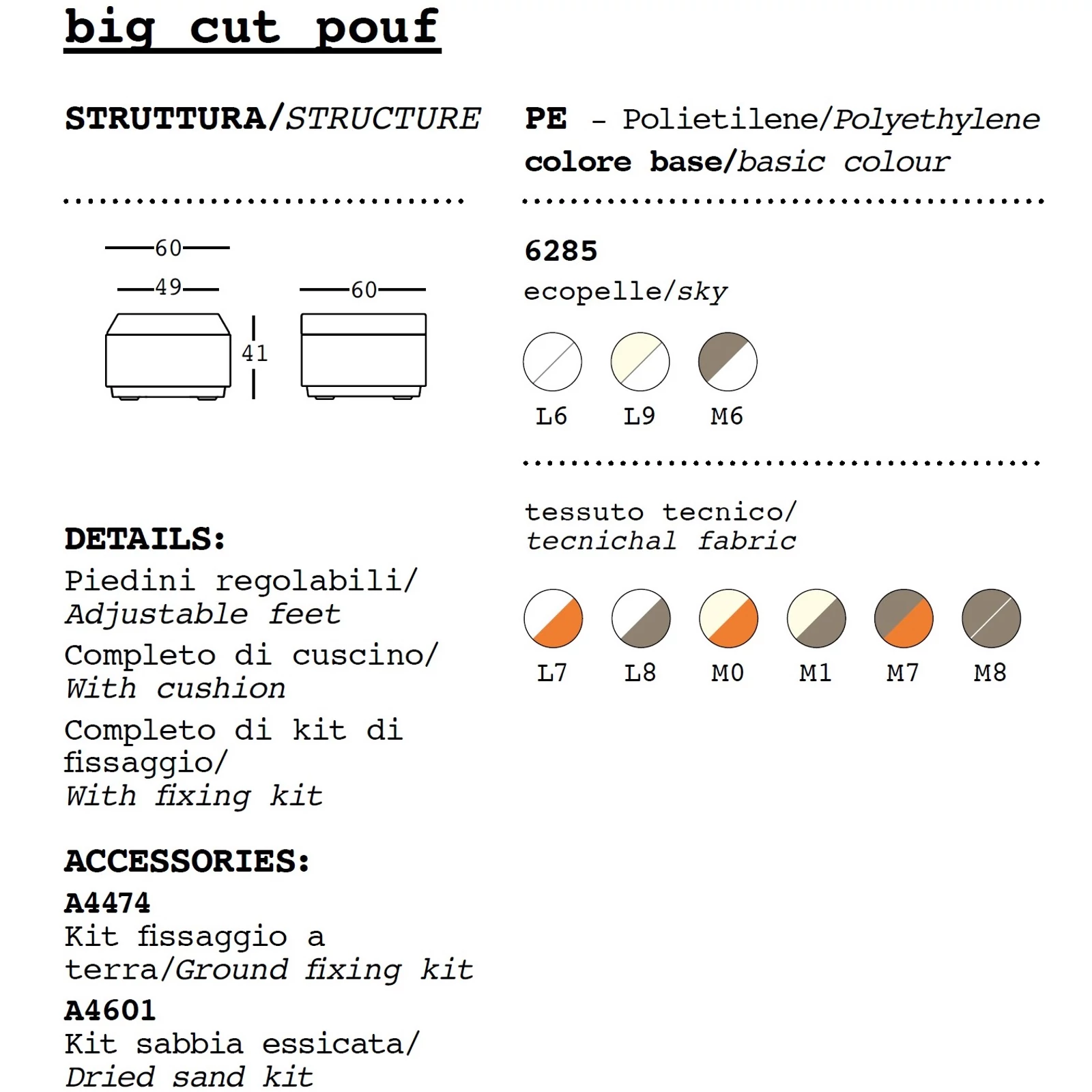 Combined with the other elements of the "Big Cut family" it can serve as a comfortable footrest or it can be used to create islands and various compositions. Use it alone or combined with other pieces to create informal seats. Provided with a cushion suitable for both indoor and outdoor use.