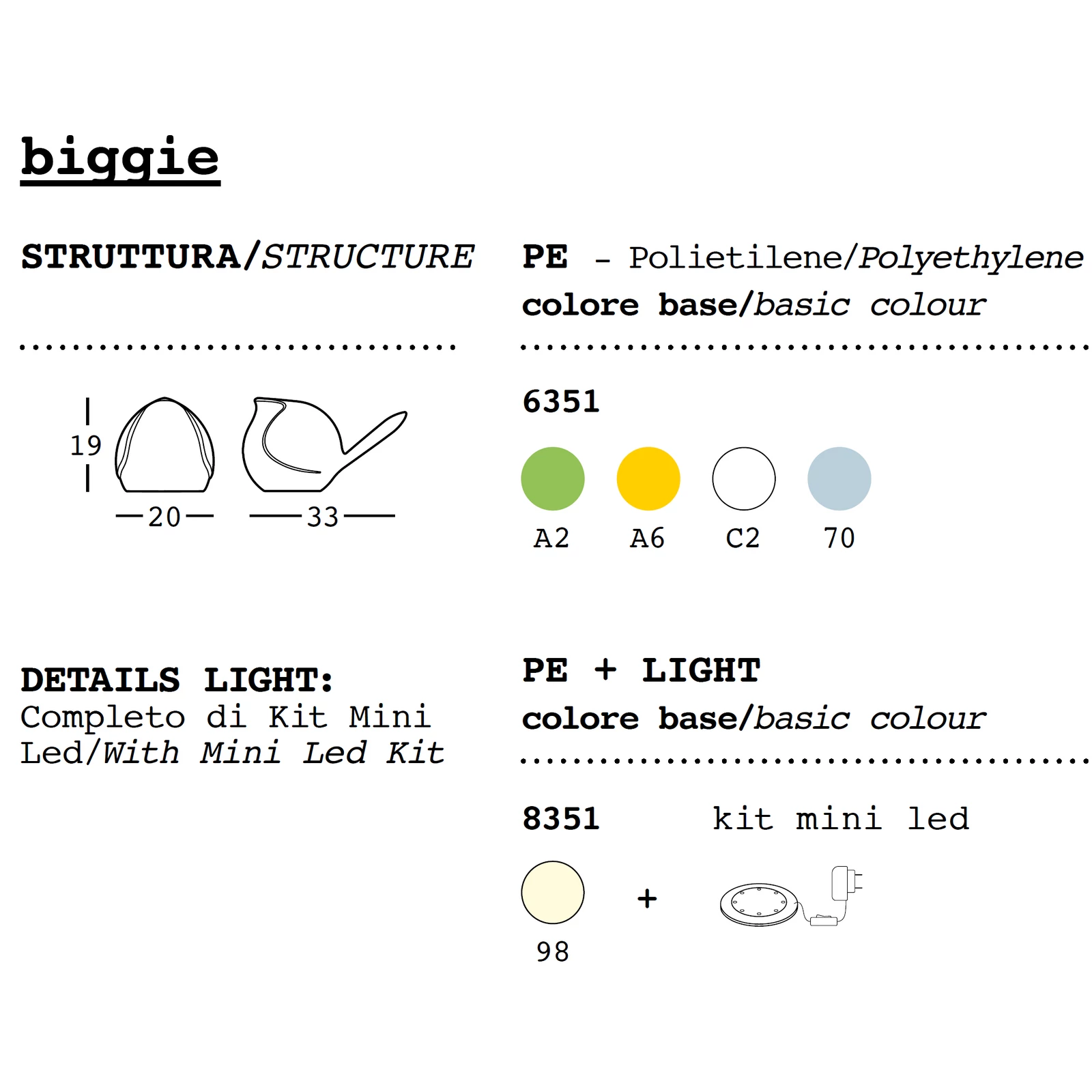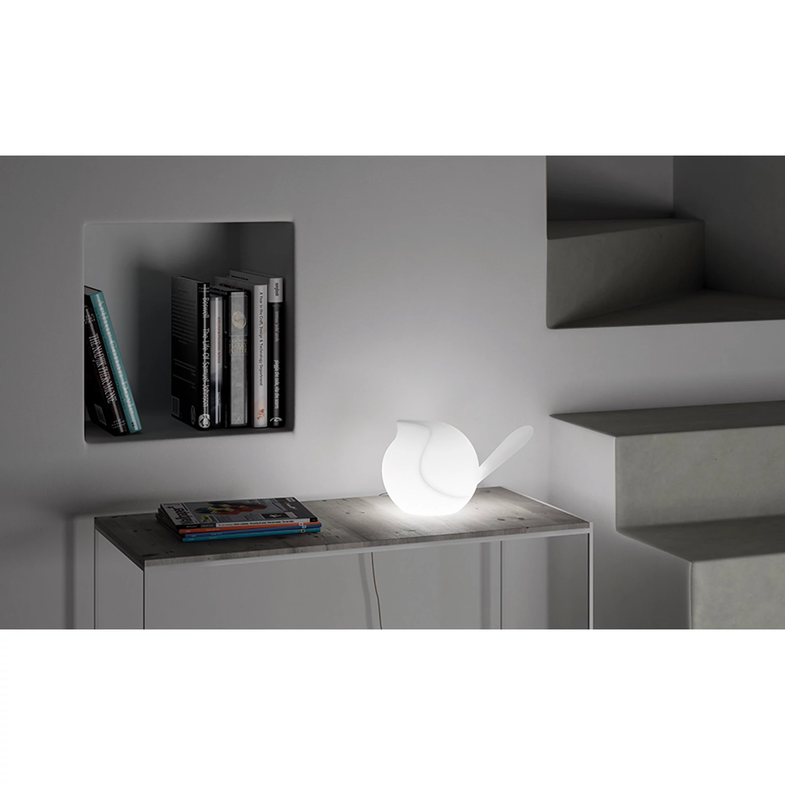 The coloured birdy Biggie chirps as she fl its from the trees’ blossoming branches, alighting on the roof of the house. Always on the look-out for crumbs, with her charm she can soften even the most aloof humans. Designed by Filippo Protasoni, this item is ideal for every home environment and is loved by adults and children alike. Available in four colours, and in the ‘illuminated’ version.