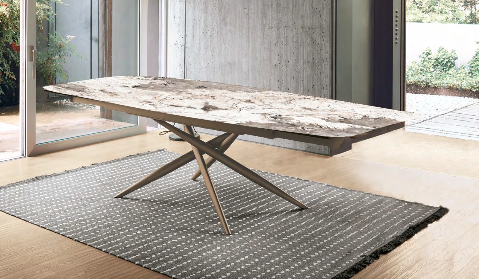 Étkezőasztal kerámia asztallappal, bővíthető, íves, 180x110 cm (+2x50 cm bővíthető) – Sedit Diamond