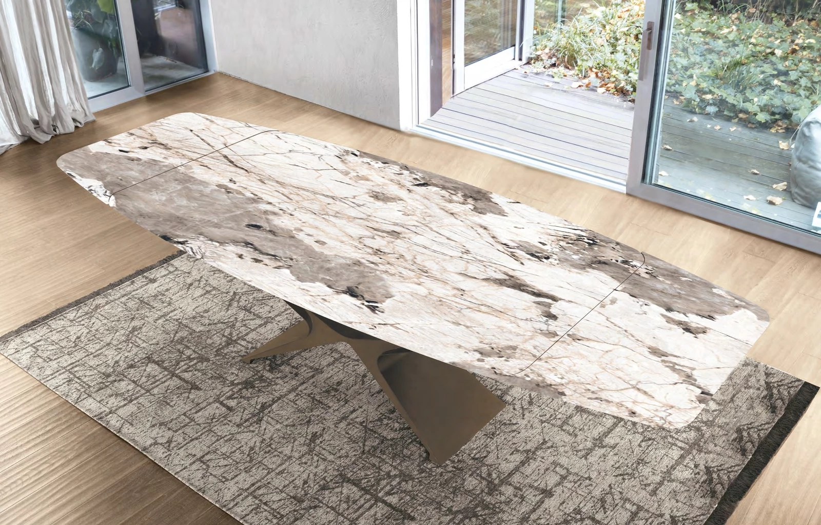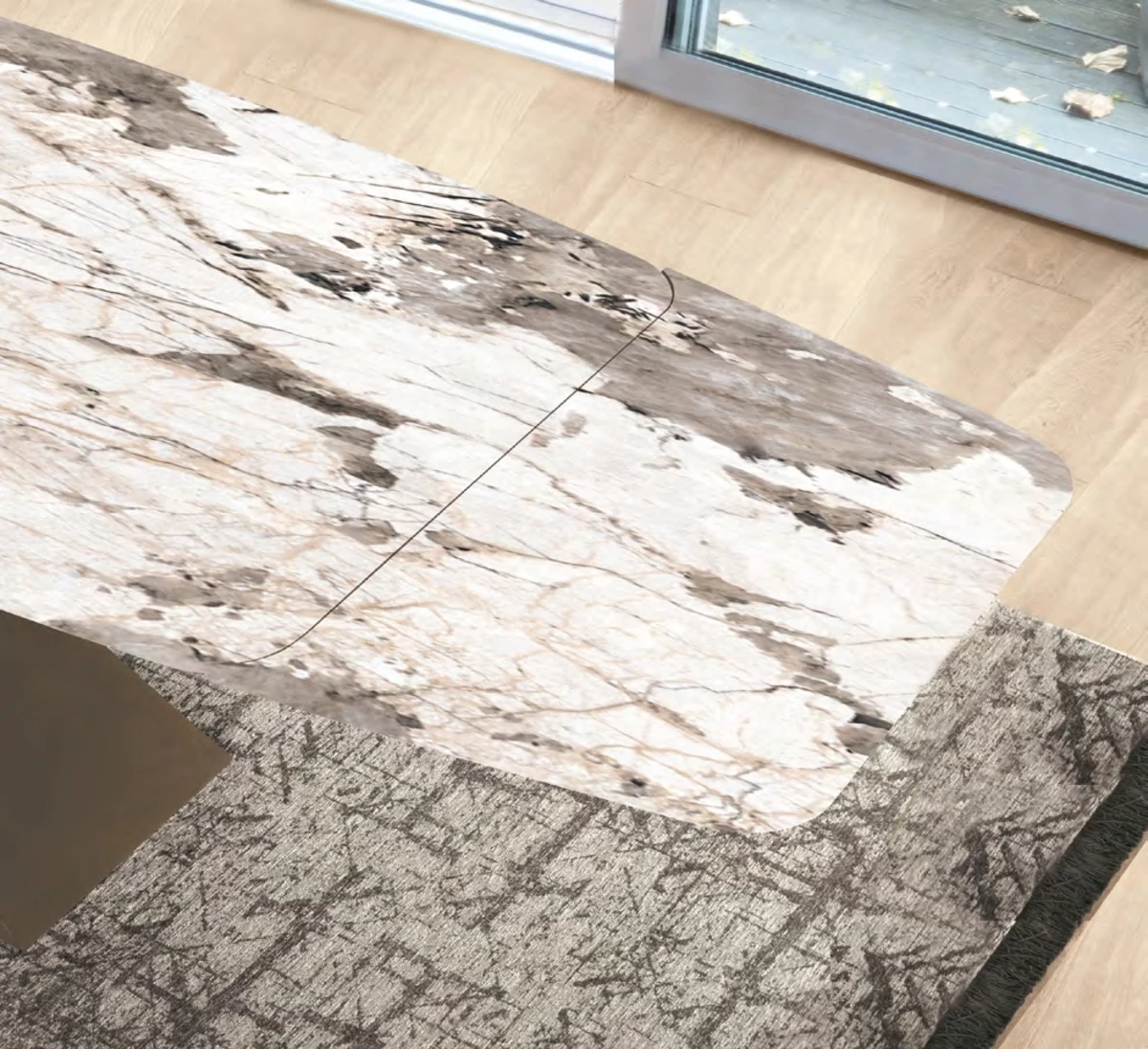 Étkezőasztal kerámia asztallappal, bővíthető, íves, 180x110 cm (+2x50 cm bővíthető) – Sedit Chantal