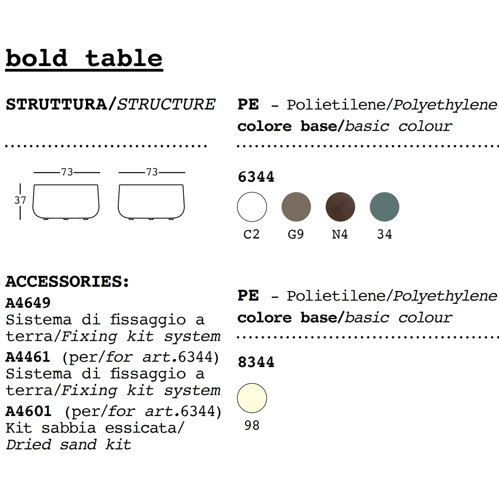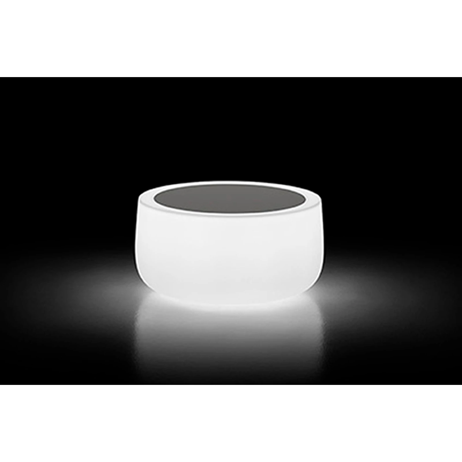 Coffee table matches and completes the "Bold" furnishings family. The top is made an HPL surface, white or black, which is fixed on the polyethylene base-frame. Ideal for creating a convivial area, coffee is available also in luminous version.