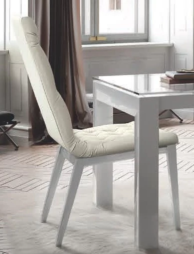 Base in solid beech wood, dried and stabilized with a certified industrial process (residual humidity 12%). Acrylic-based glossy with automatic thermostatic application. With hot air drying. Seat with 12mm thick thermo-curved multilayer poplar plywood structure with elastic polyurethane foam filling of 35 density. Upholstery with handmade capitonné manufacturing in fireproof PVC-based eco-leather of Italian production.
