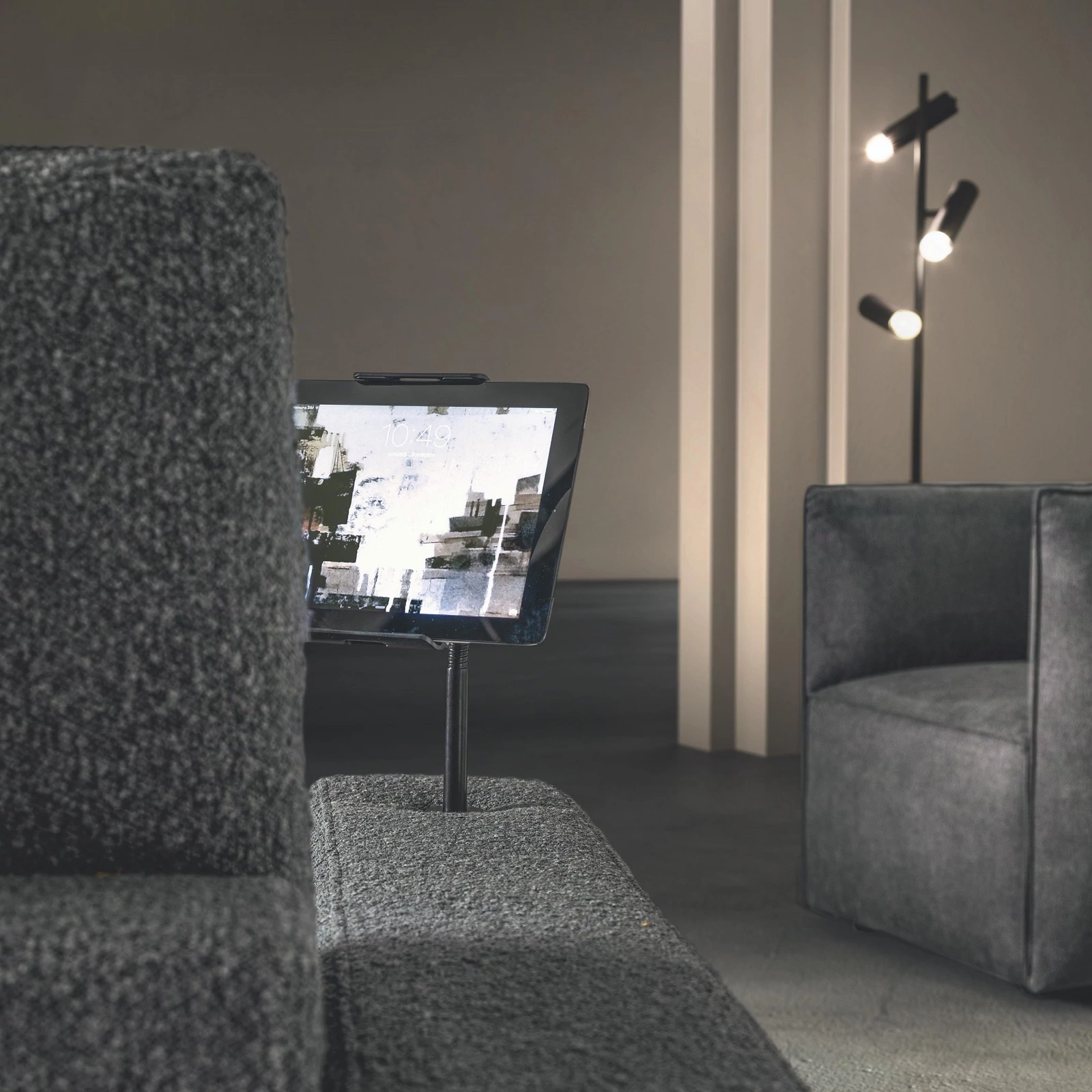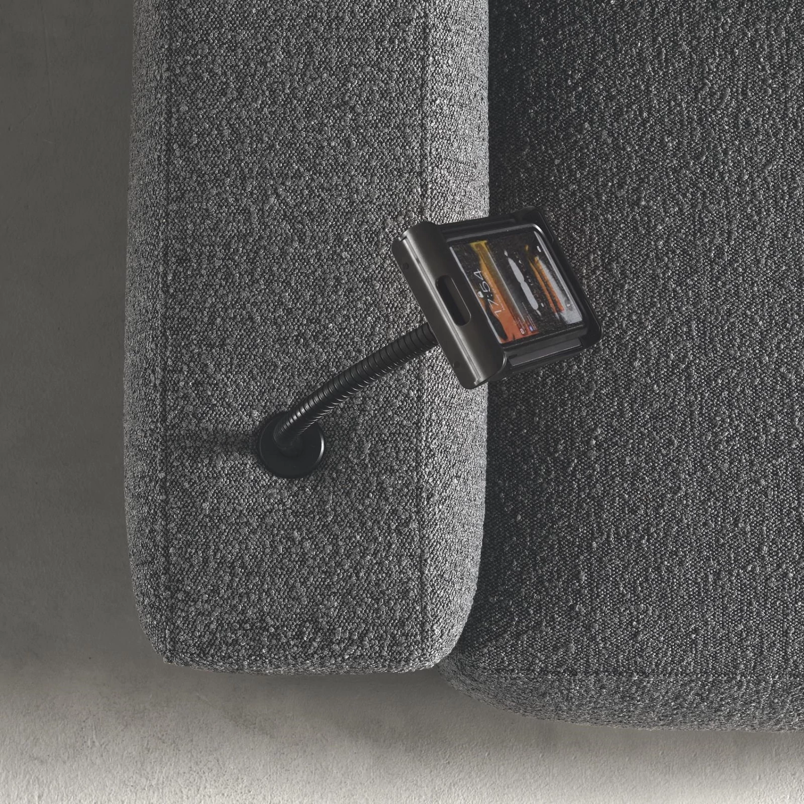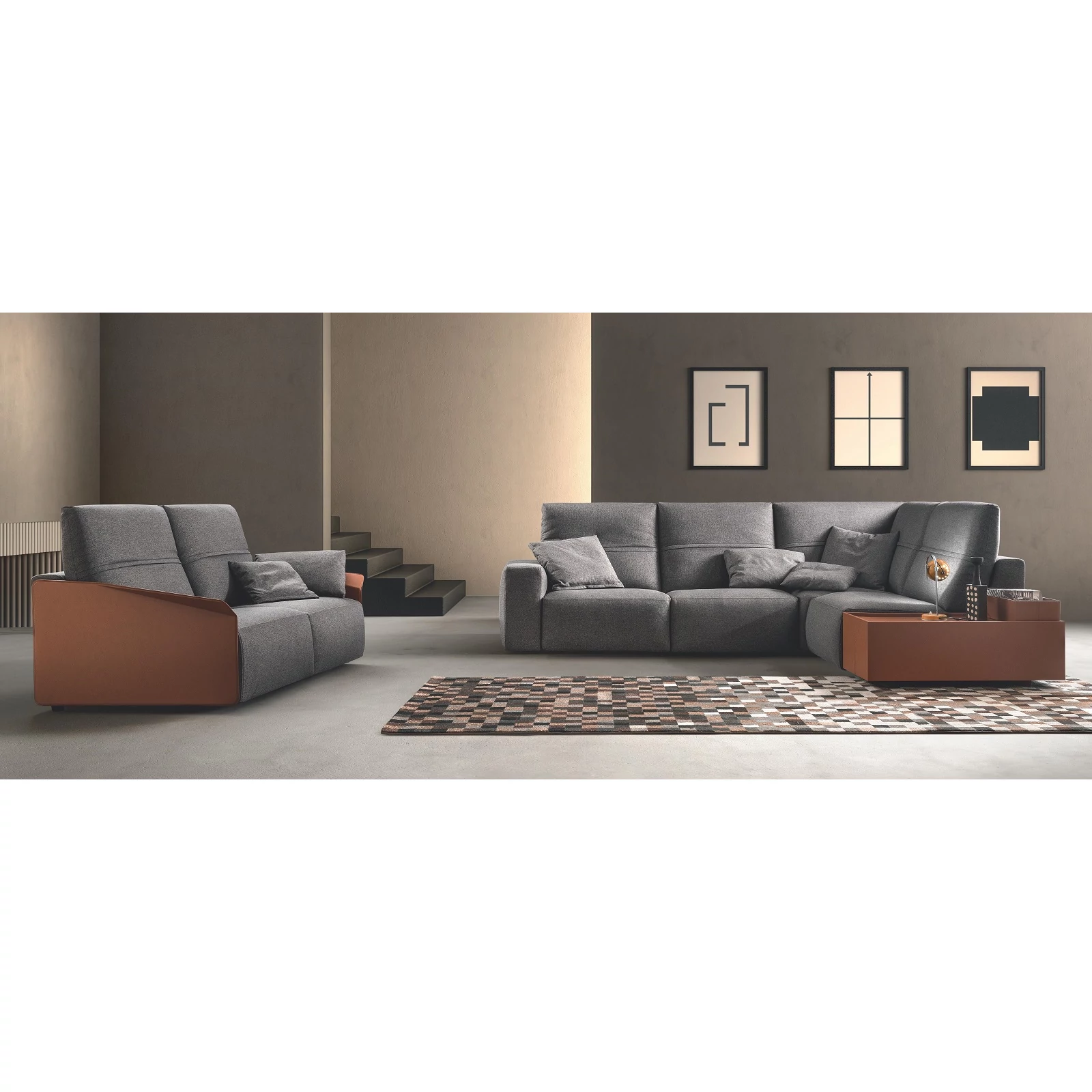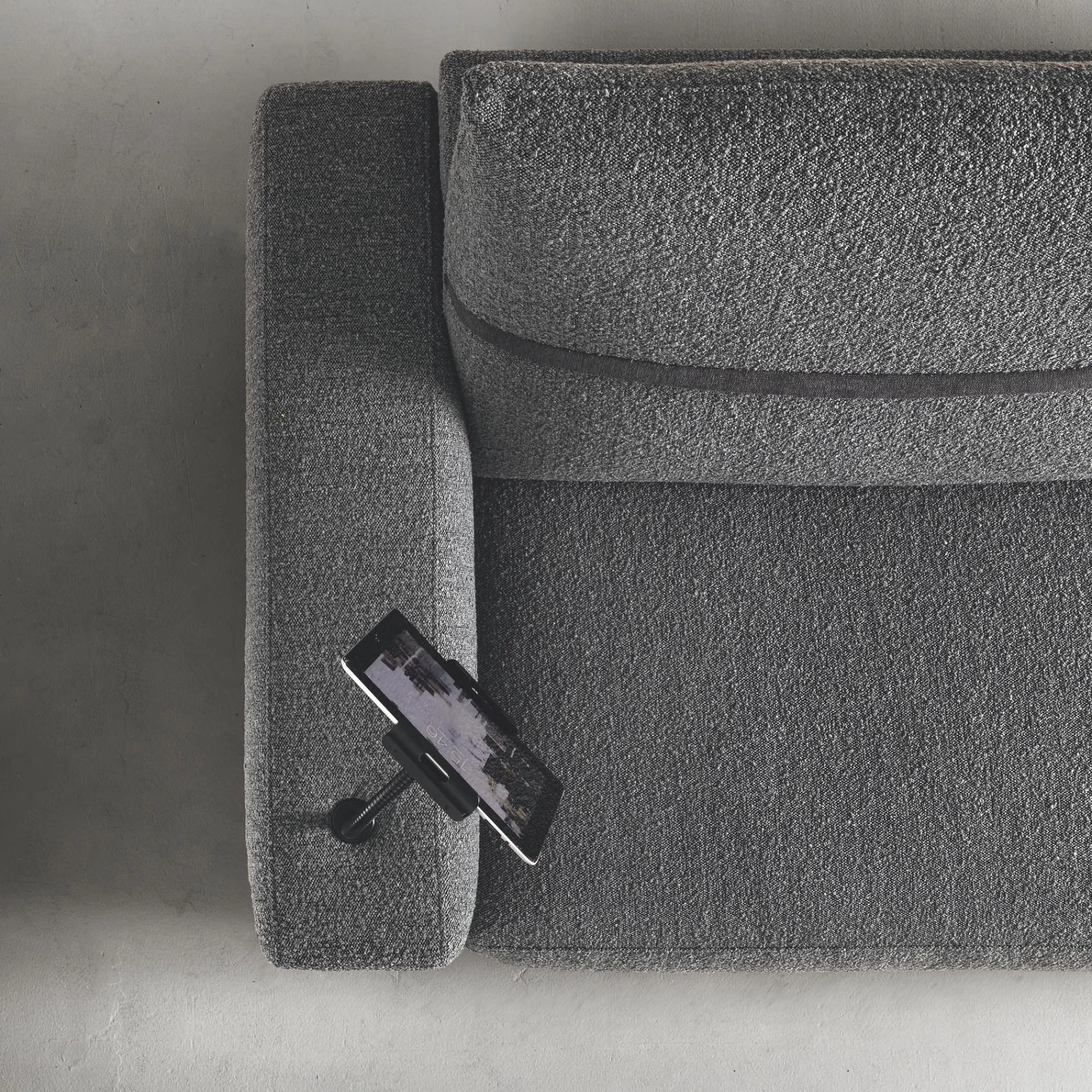 The Deep Real sofa is fully customizable: choose from multiple sizes and armrest styles, and from awide selection of fabrics and leathers; it can also be ordered as a complete living‑room set – so the most suitable piece is guaranteed! Optional features include power recline, side table, armchair, ottoman, decorative cushions, lamp, wireless charger, plus tablet and smartphone holder. For details and exact prices, the team is happy to help via the listed contacts.