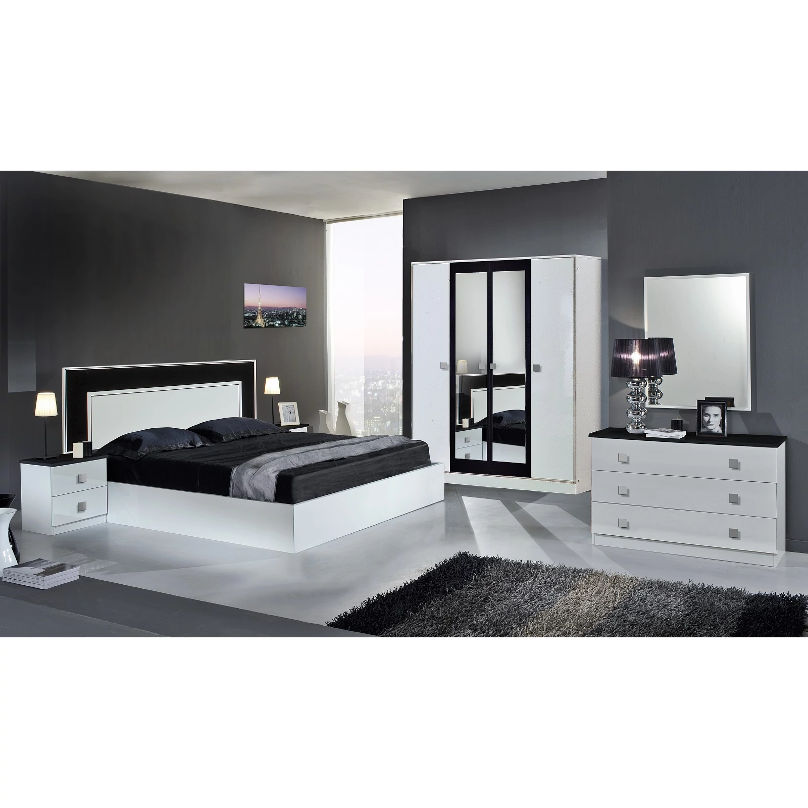 DI-AAL-LET-18-BNDouble bedstead - 180 cm, white-blackDI-AAL-CMN-BNNight table - white-blackDI-AAL-CMD-BNChest of drawers - white-blackDI-AAL-SPE-BNMirror - whiteDI-AAL-AR4-BN4-doors cabinet, with 2 mirrored doors - white-black