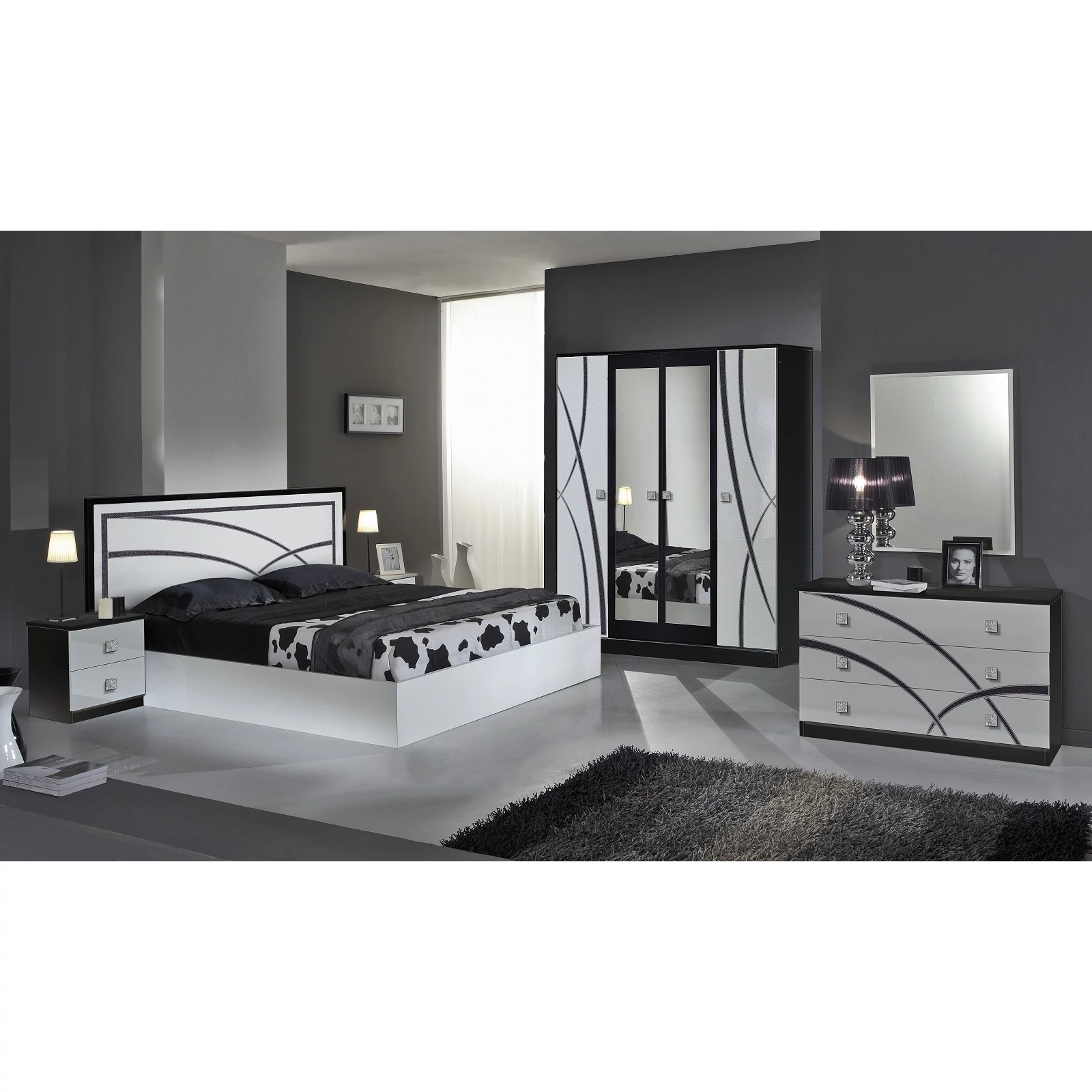DI-AMB-LET-16-BIDouble bedstead - 160 cm, whiteDI-AMB-CMN-NBNight table - black-whiteDI-AMB-CMD-NBChest of drawers - black-whiteDI-AMB-SPE-BIMirror - whiteDI-AMB-AR4-NB4-doors cabinet, with 2 mirrored doors - black-white