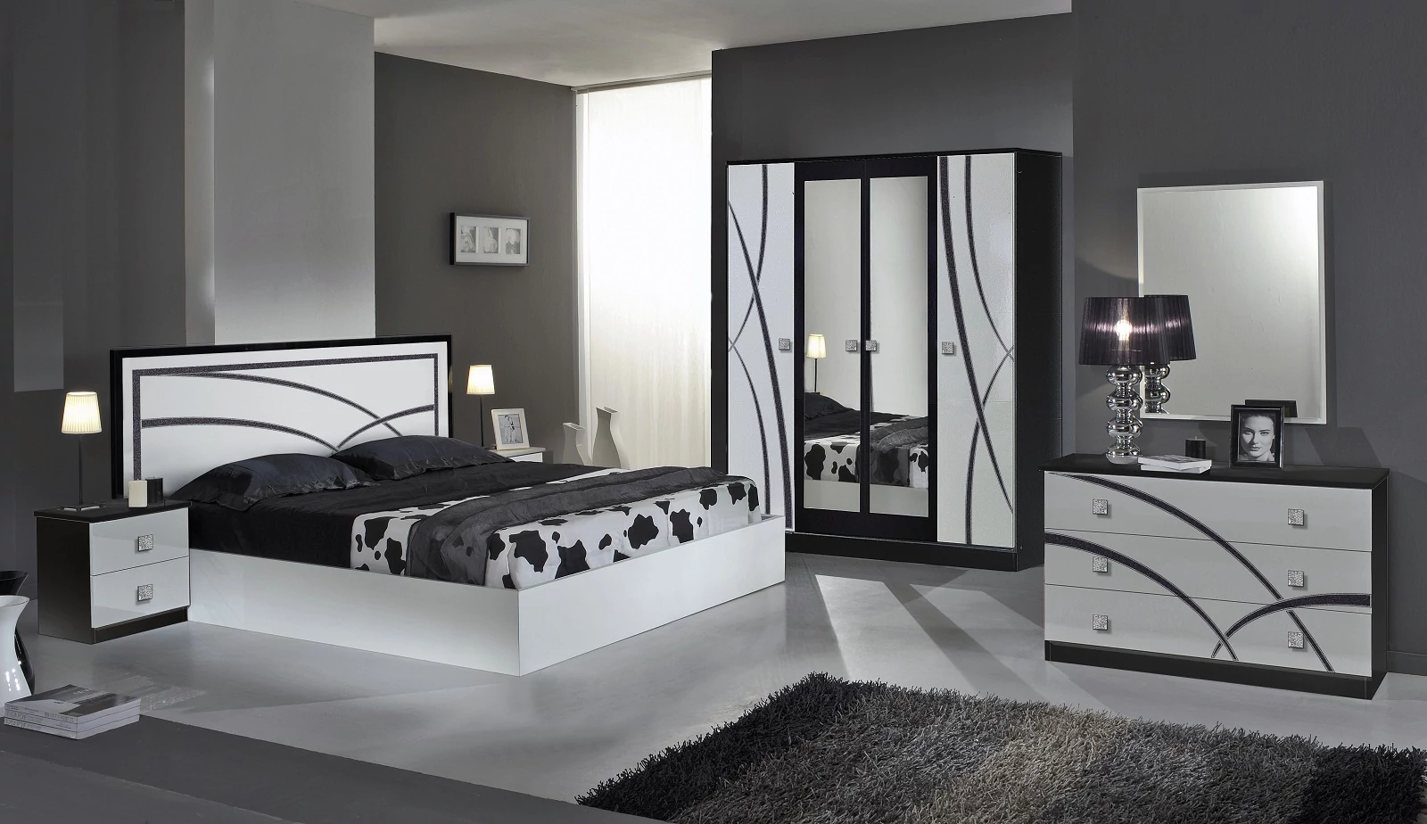 DI Ambra bedroom - black-white with 180x200 cm bed, with 4-doors cabinet