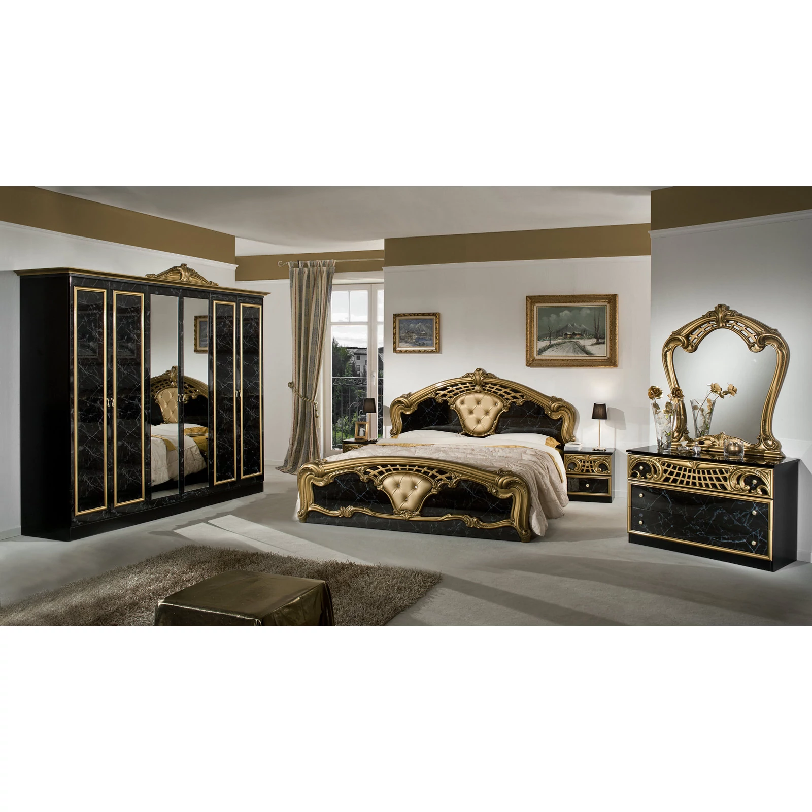 DI-LAR-LET-16-NODouble bedstead - 160 cm, black-goldDI-LAR-CMN-NONight table - black-goldDI-LAR-CMD-NOChest of drawers - black-goldDI-LAR-SPE-ORDecorated mirror - goldDI-LAR-AR6-NO6-doors cabinet, with 2 mirrored doors - black-gold