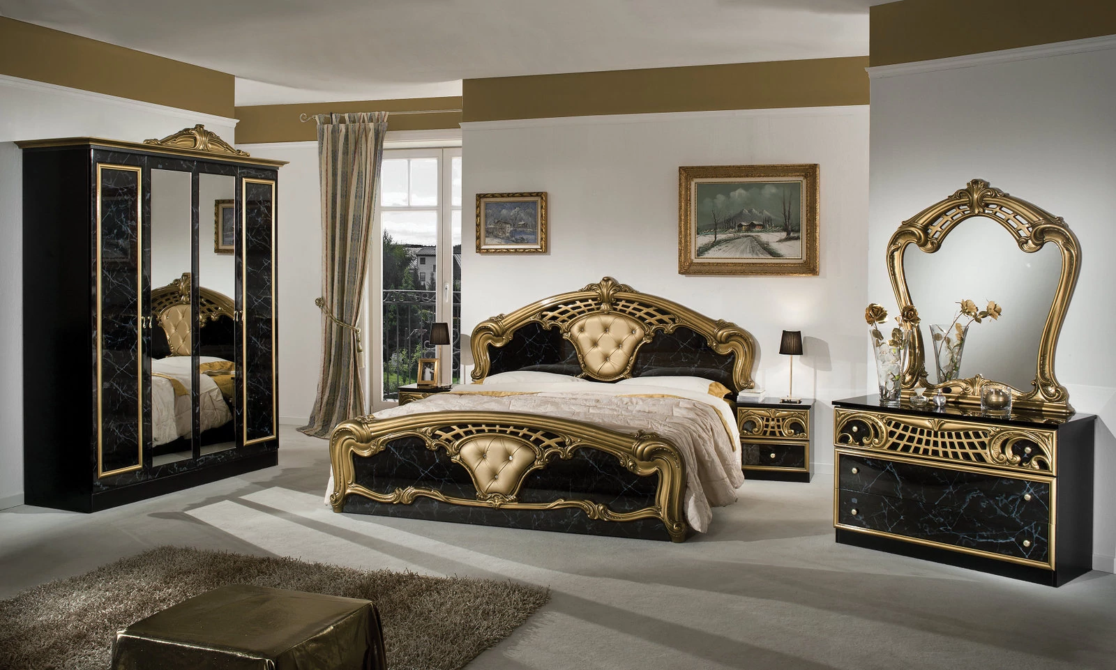 DI Lara bedroom - black-gold with 180x200 cm bed, with 6-doors cabinet