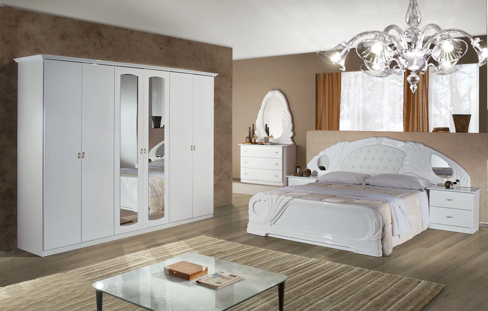 DI Lory Lux bedroom - white with 180x200 cm bed, with 6-doors cabinet