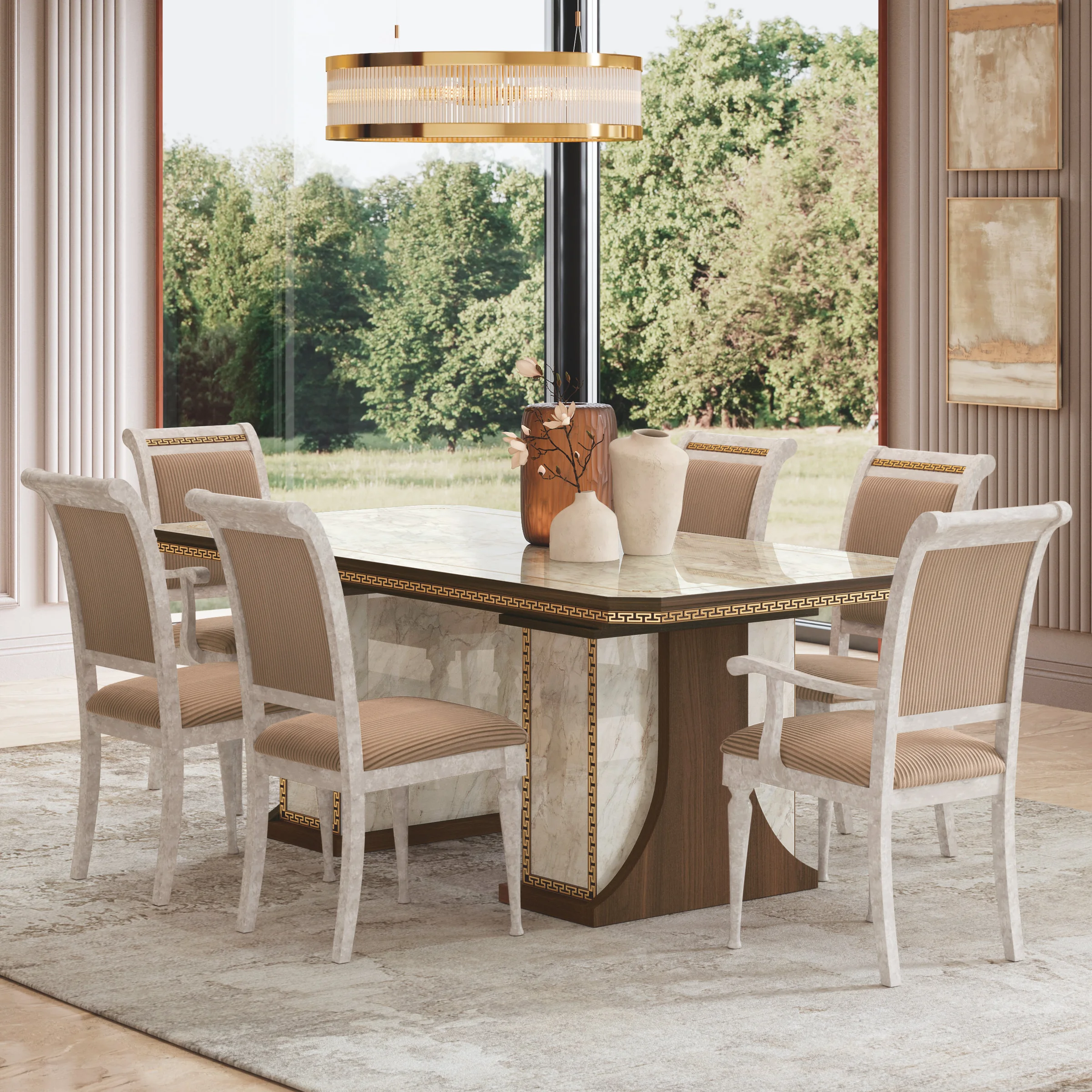 ArredoClassic Romantica Day Classic Walnut-Marble Dining Table, 200x102 cm