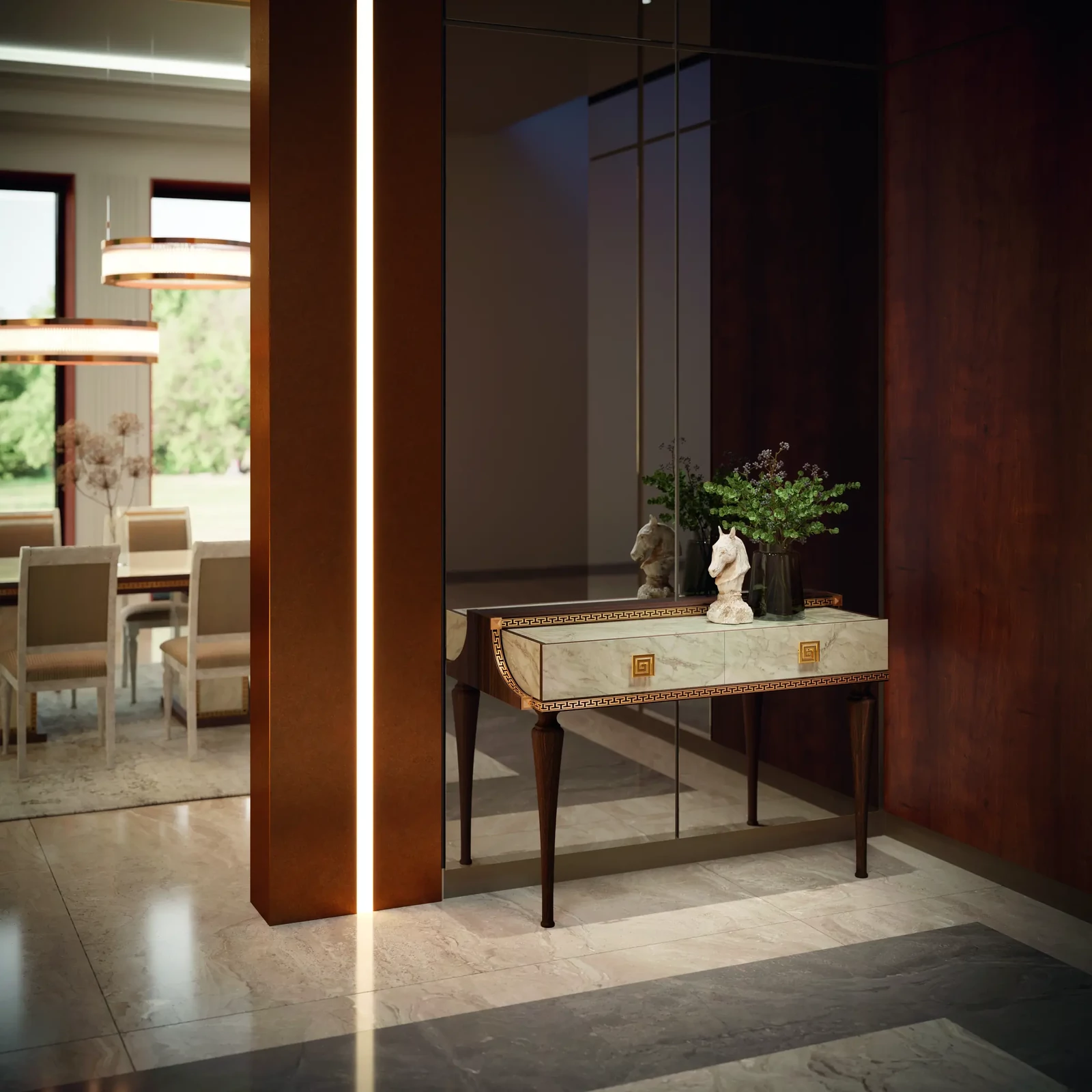 ArredoClassic Romantica Day Classic Walnut-Marble Console Table