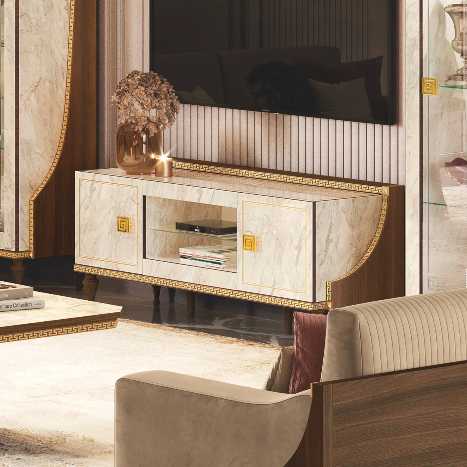 ArredoClassic Romantica Day Classic Walnut-Marble TV Cabinet