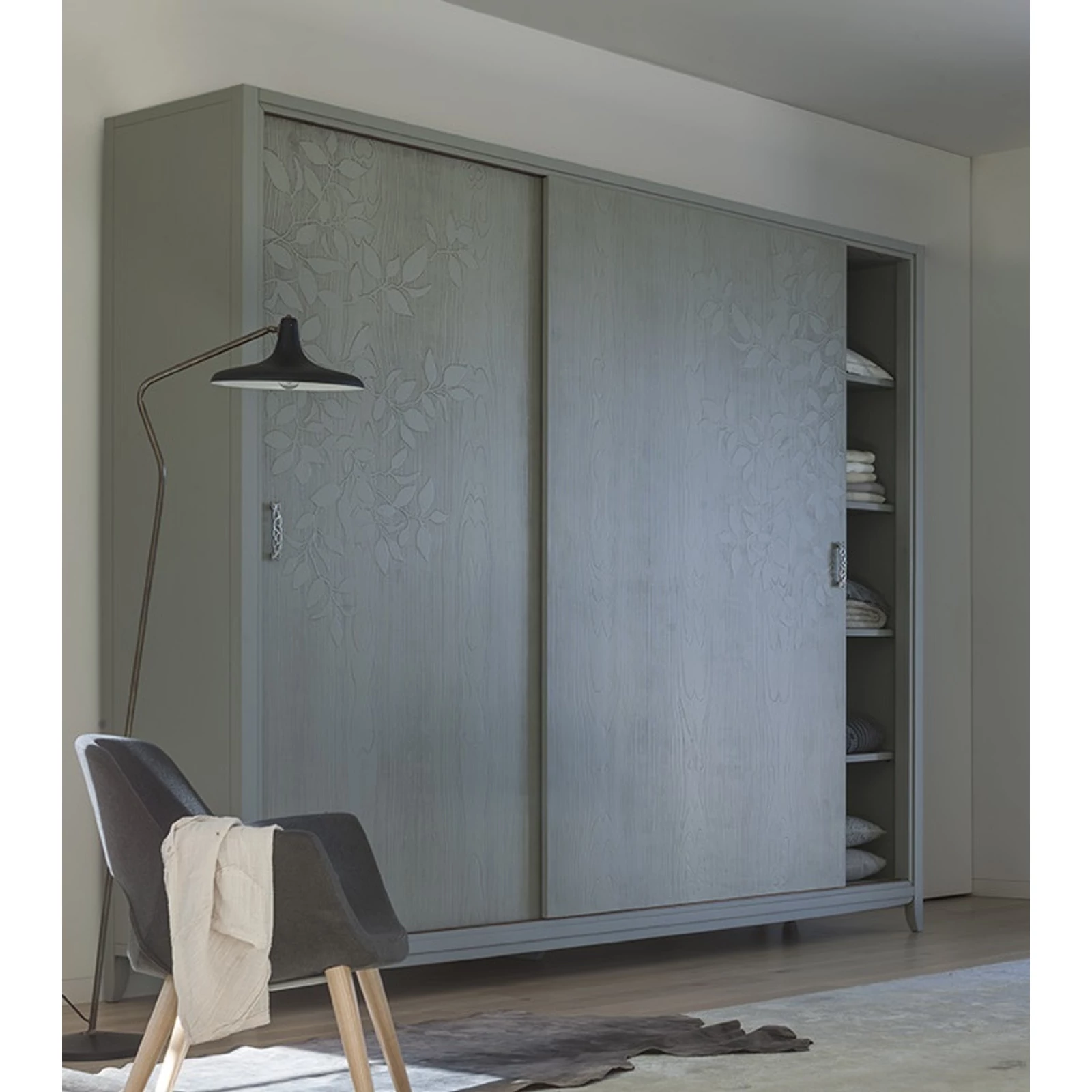 Elegant shapes and practicality: the bedding container makes the storage spaces of the bedroom larger, and offers new solutions. This style adapts to the needs of modern life, and practicality reveals its elegant side to us. The compilation of the chest of drawers can be changed, but it remains invariably beautiful. With or without decoration, it can be a really sensual element of our room, and in addition it can be used for storage as well. With its classic lines and soft colors, the night tables and the bed give a restrained, natural effect to the bedroom. Comfortable, spacious, tidy: these are the essential features of an ideal wardrobe closet. With the smaller, decorated wardrobe closet we can enjoy style combined with practicality even in narrower spaces.