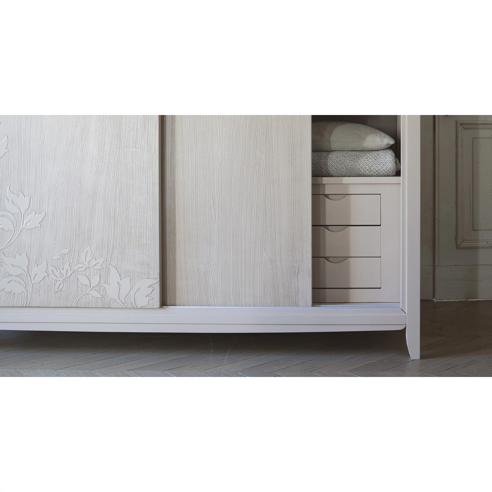 Elegant shapes and practicality: the bedding container makes the storage spaces of the bedroom larger, and offers new solutions. This style adapts to the needs of modern life, and practicality reveals its elegant side to us. The compilation of the chest of drawers can be changed, but it remains invariably beautiful. With or without decoration, it can be a really sensual element of our room, and in addition it can be used for storage as well. With its classic lines and soft colors, the night tables and the bed give a restrained, natural effect to the bedroom. Comfortable, spacious, tidy: these are the essential features of an ideal wardrobe closet. With the smaller, decorated wardrobe closet we can enjoy style combined with practicality even in narrower spaces.