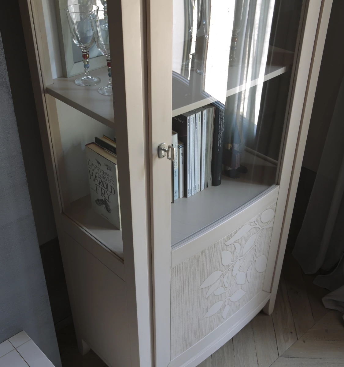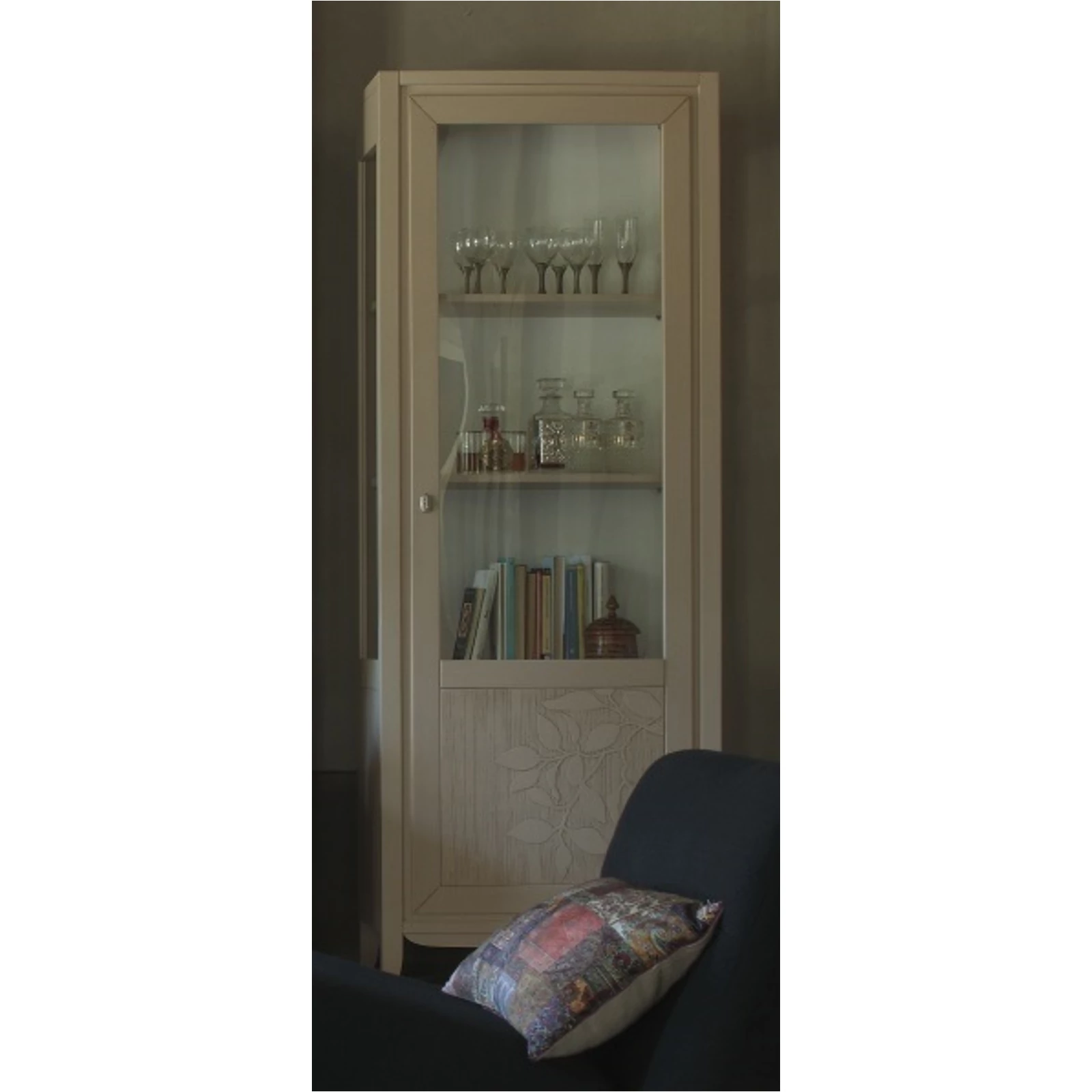 The living room is style itself: this is where soft wood and light glass meet, which create together these furniture that will remain in style forever. The decorative elements which adorn the doors, highlight the demanding elaboration. The door with its smooth surface emphasize the natural softness of glass. The light-colored grain and soft lines are the distinctive marks of this furniture. It gets inspired by the past, and reinterprets that age with the tones and shapes of the contemporary style. The beauty of its whole environment is forever lasting.