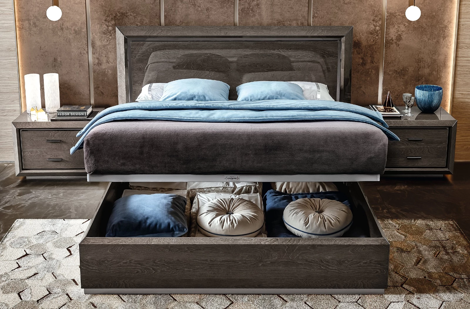 Elite Double bedstead with bedding container, with wooden headboard - 180x200 cm, silver birch