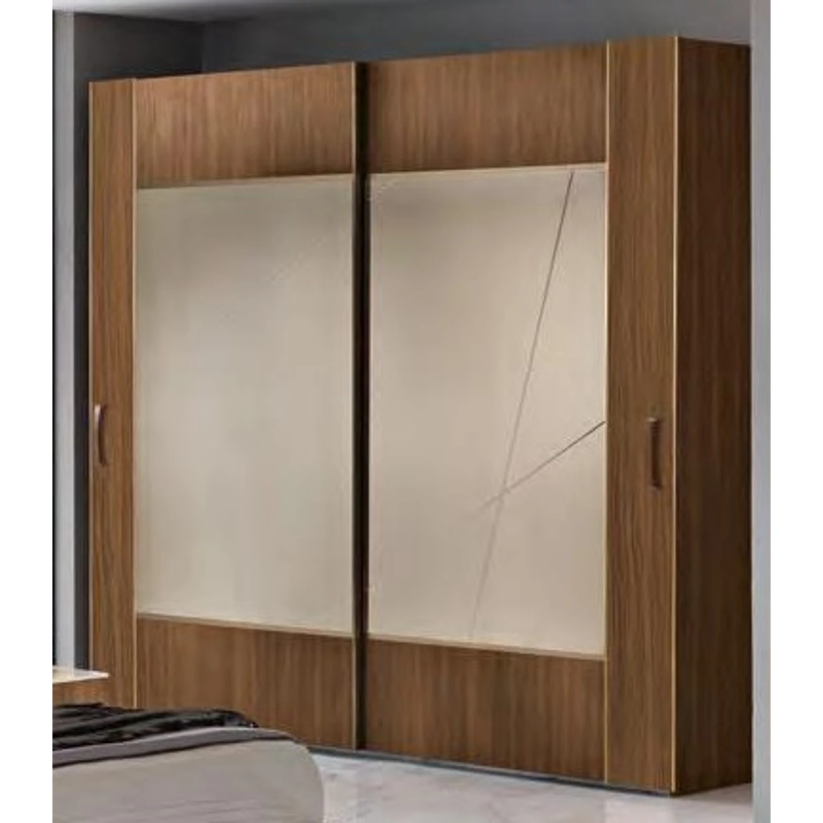 WARDROBE 2 SLIDING DOORS MIRROR DOOR, WOODEN DOOR AND UPHOLSTERED WALLS