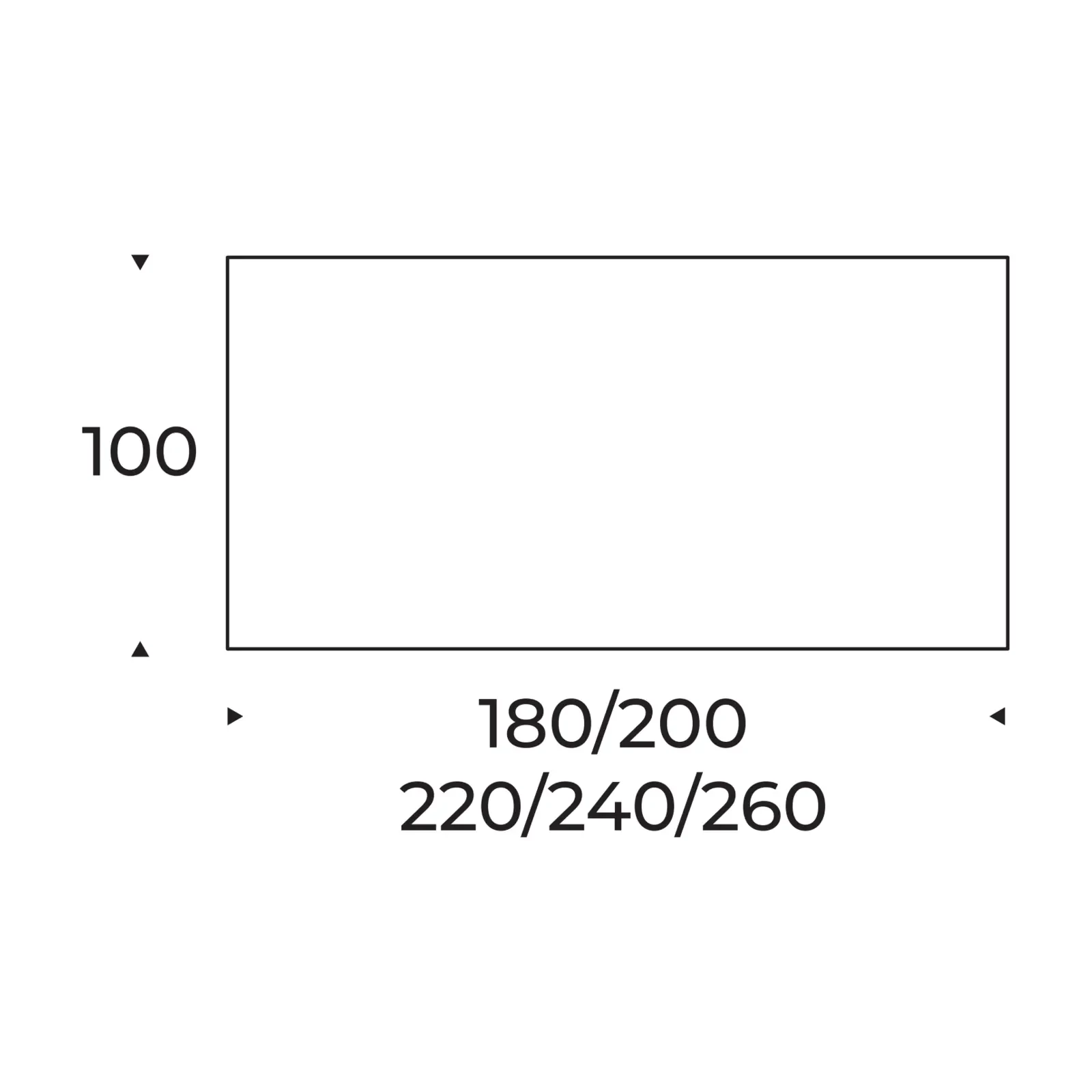 - 180x100 cm (+2x50 cm extendable)