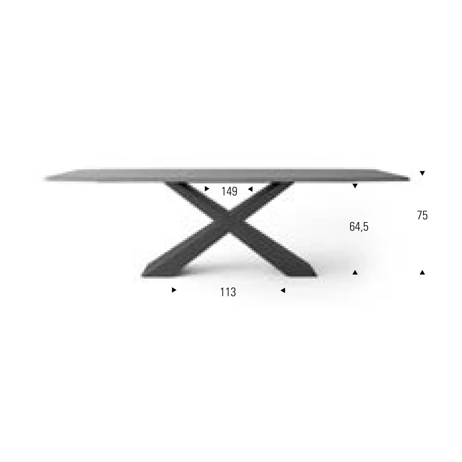 - “X”-shaped metal legs for a geometric yet dynamic effect