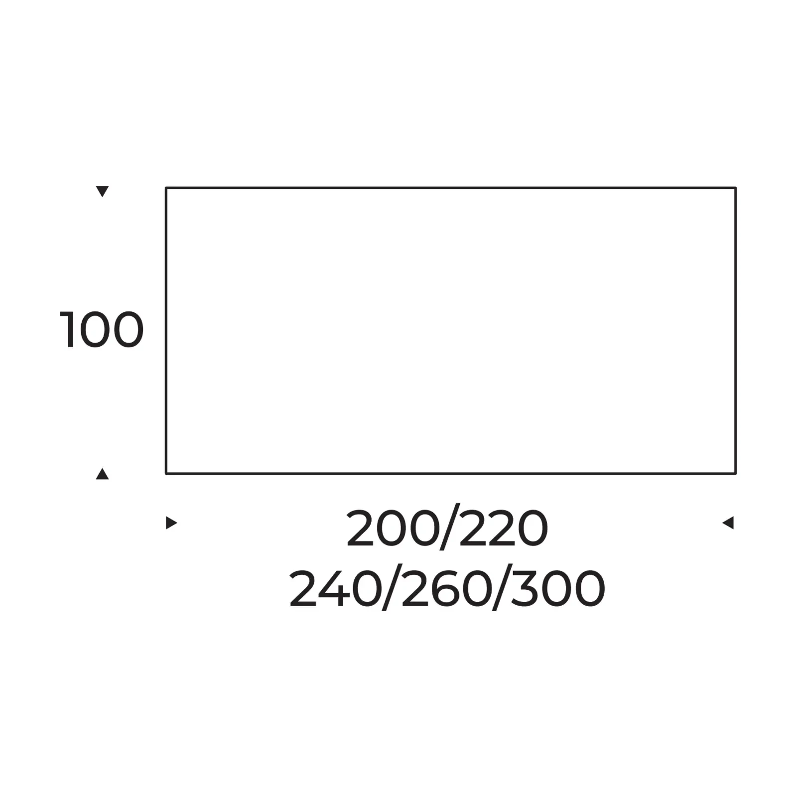 - 200x100 cm (+2x50 cm extendable)