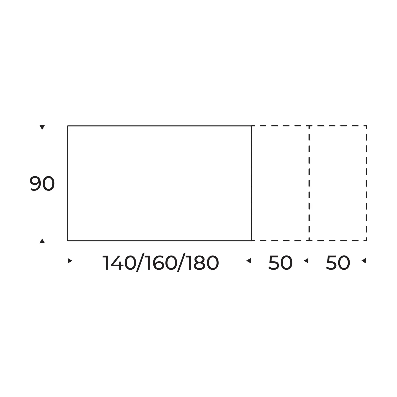 - 160x90 cm (+2x50 cm extendable)