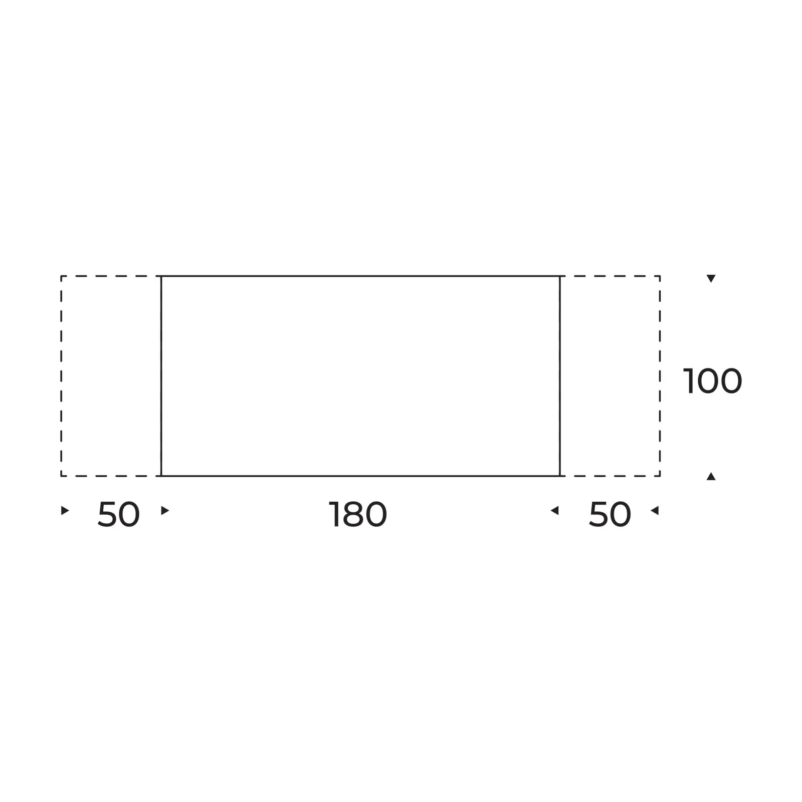 - 180x100 cm (+2x50 cm extendable)
