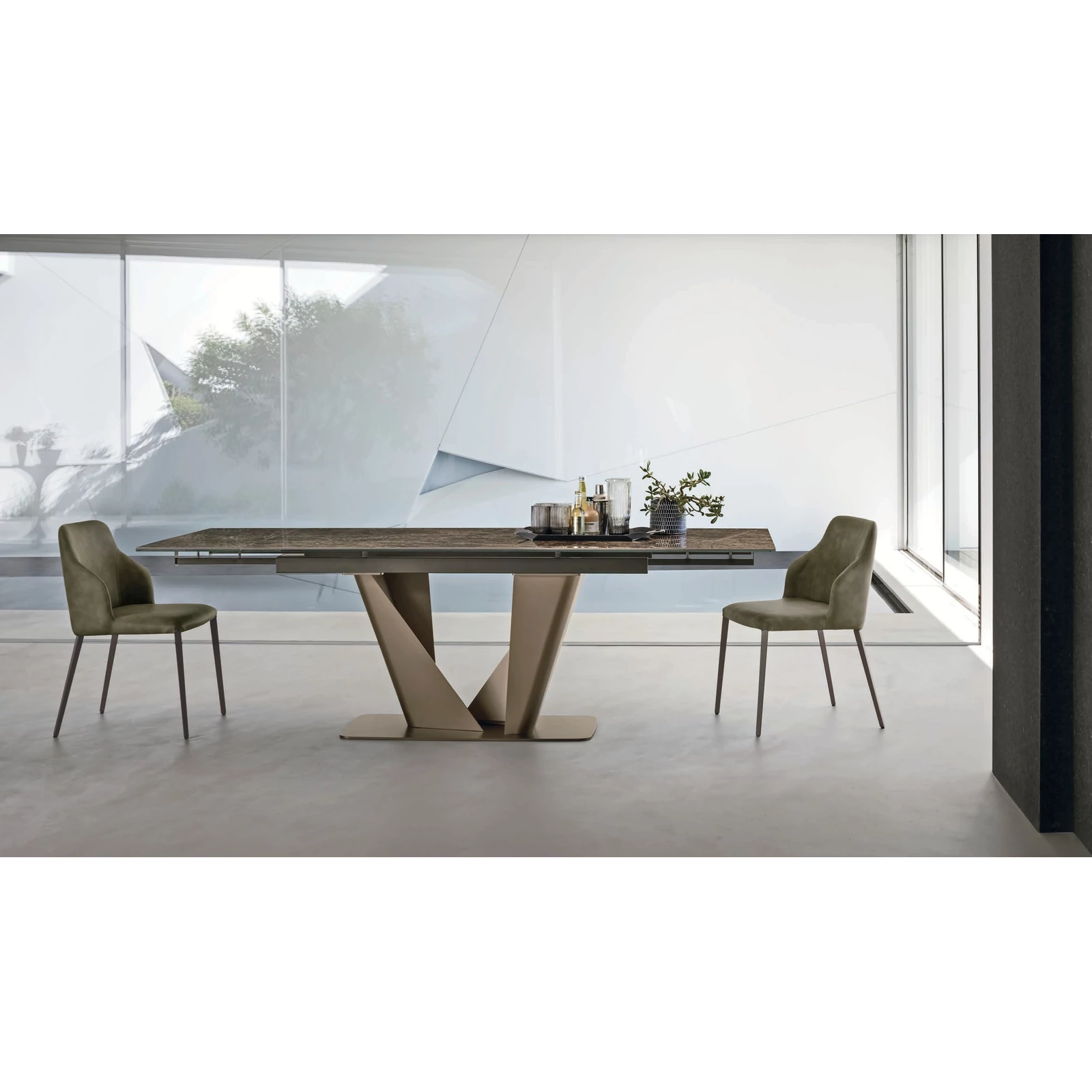 The symmetrical base ensures stability, while the extendable version optimizes space, making the table practical even when seating larger groups. Its form is elegant yet functional, easily fitting modern, classic, or eclectic interiors.
